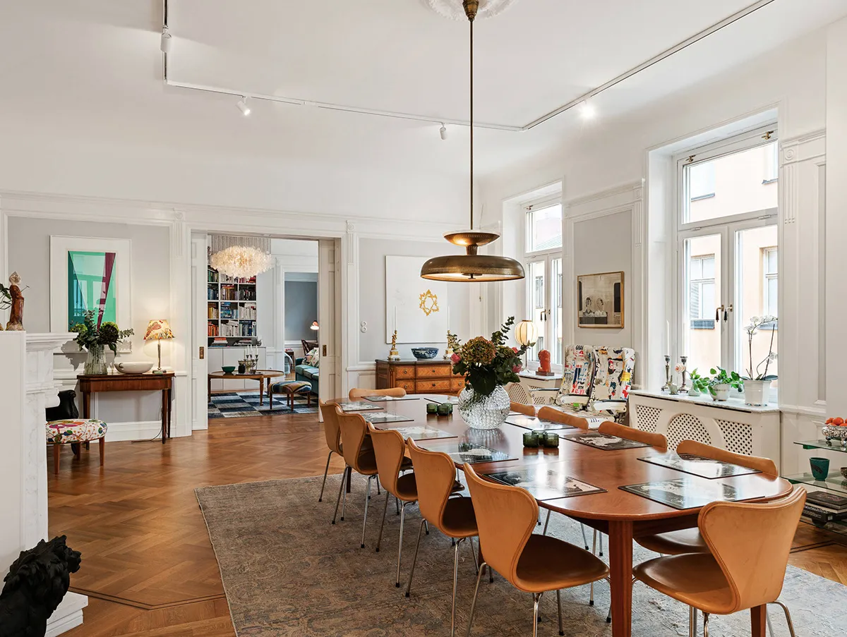 Dining Table for 12 People and Bold Details: Apartments in Stockholm