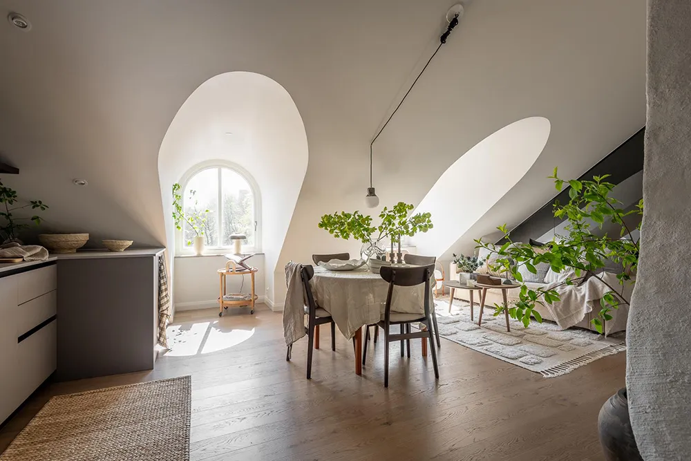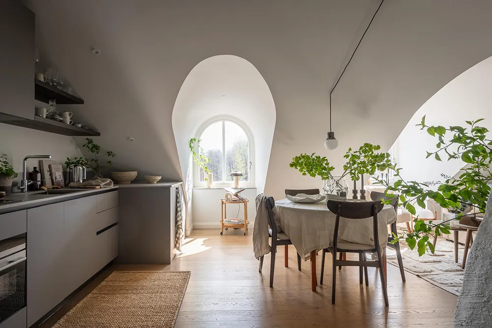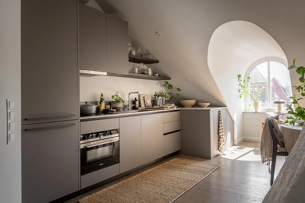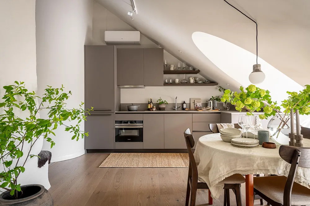 Olive and other green shades in the design of a Swedish apartment (76 sq. m)