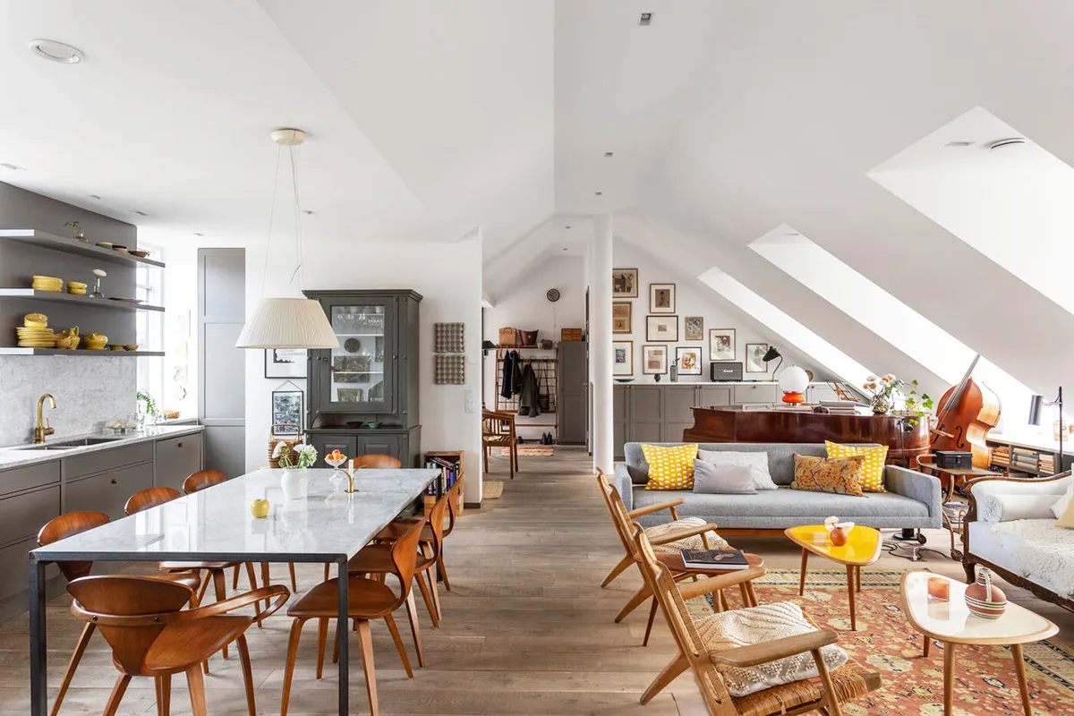 Lively Interior of a Spacious Loft with Terrace in Stockholm