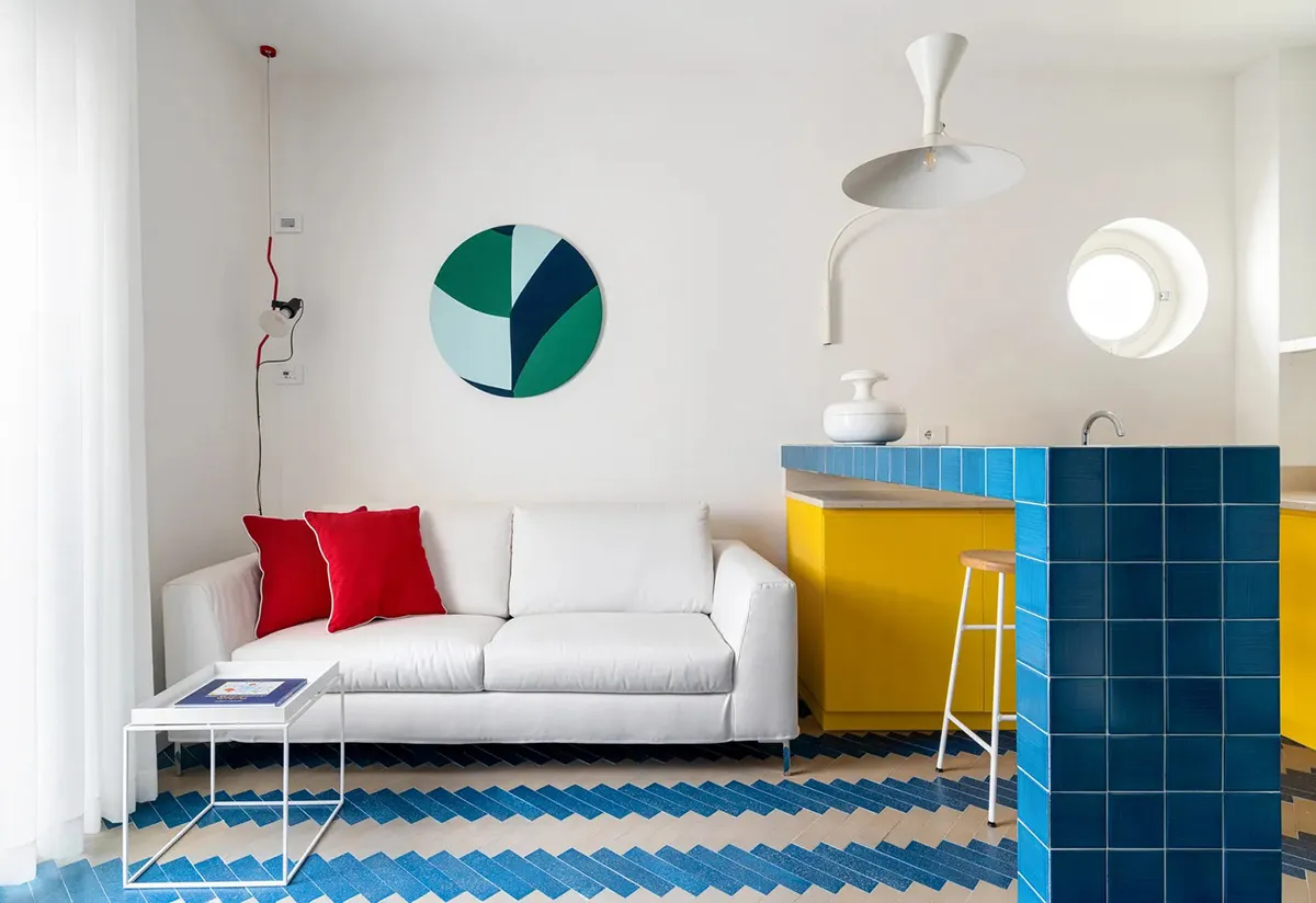 Marine-style design of a small beach house with terrace in Italy