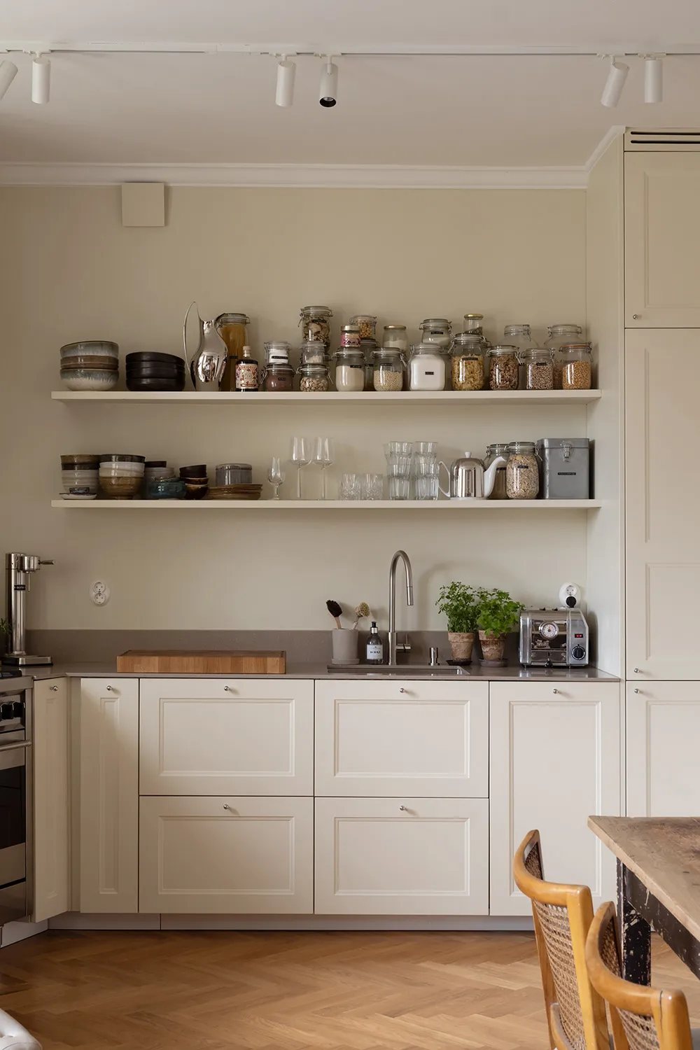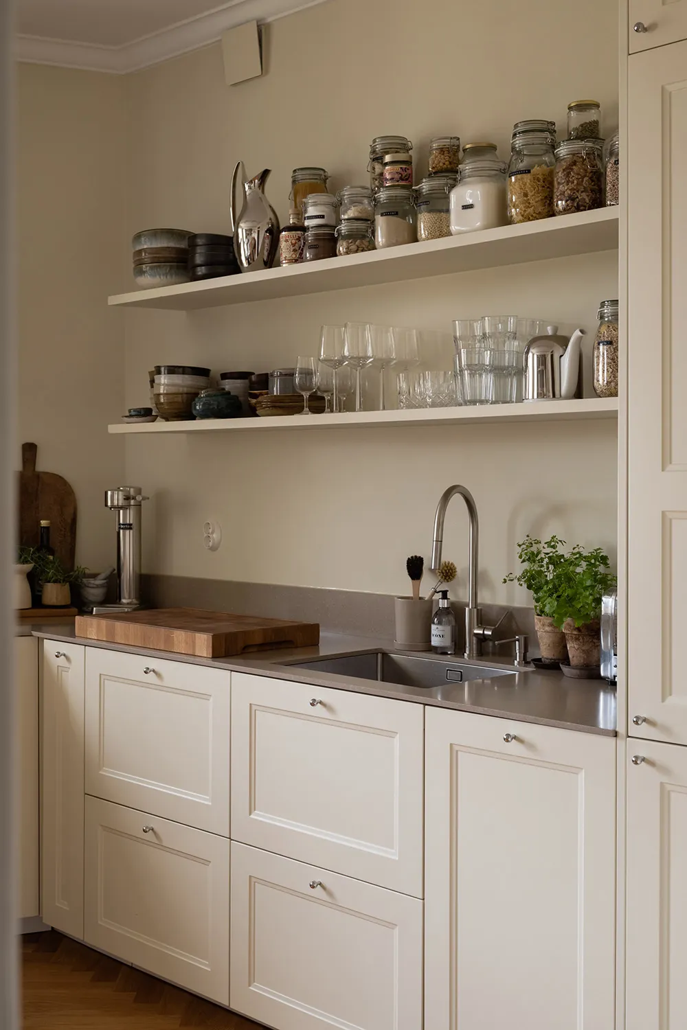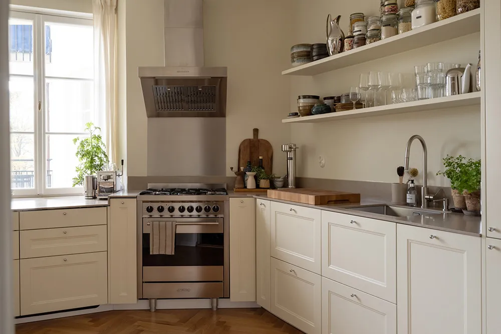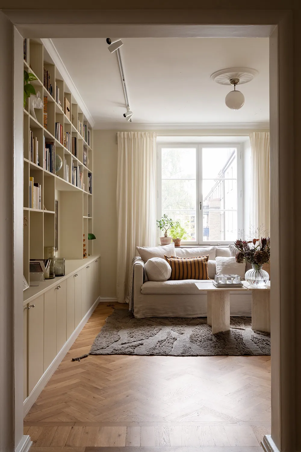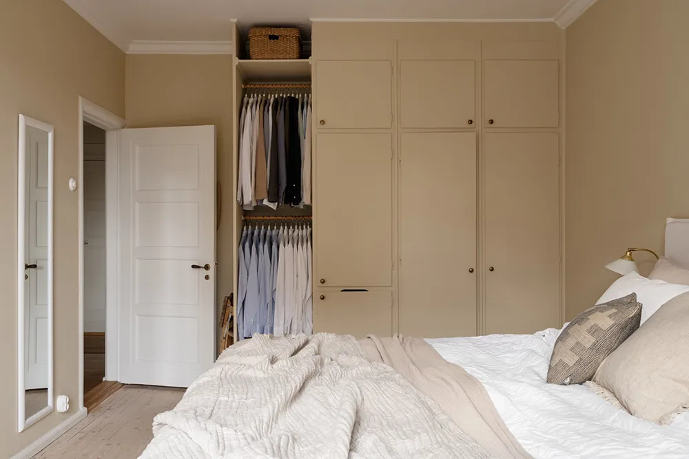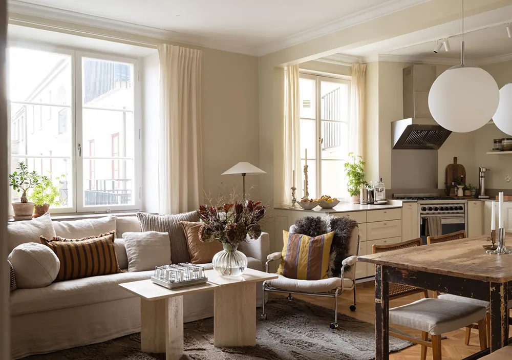 The foundation of the interior of this small two-bedroom apartment in Gothenburg is calm and monochrome, with light beige and sandy tones dominating.