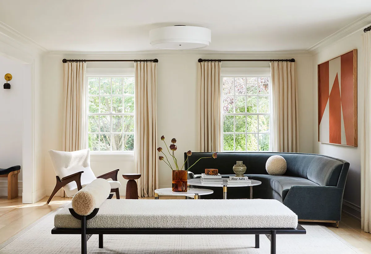 The interiors of this house in a quiet New York suburb still reflect the stylish elegance of urban apartments, but the greenery outside the windows and the relaxed comfort of the space already speak of peaceful rural life.