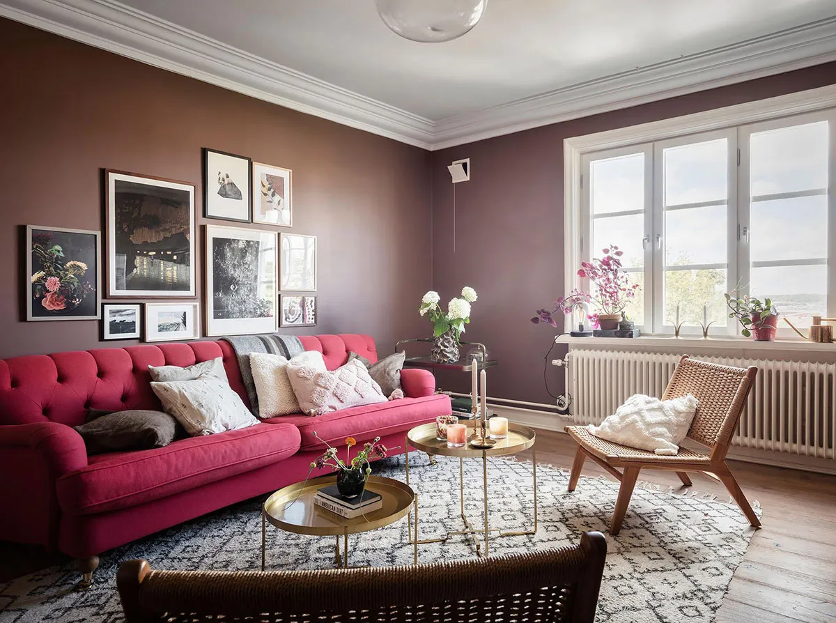 Living Room with Red Sofa and Spacious Loft: Apartment in Gothenburg