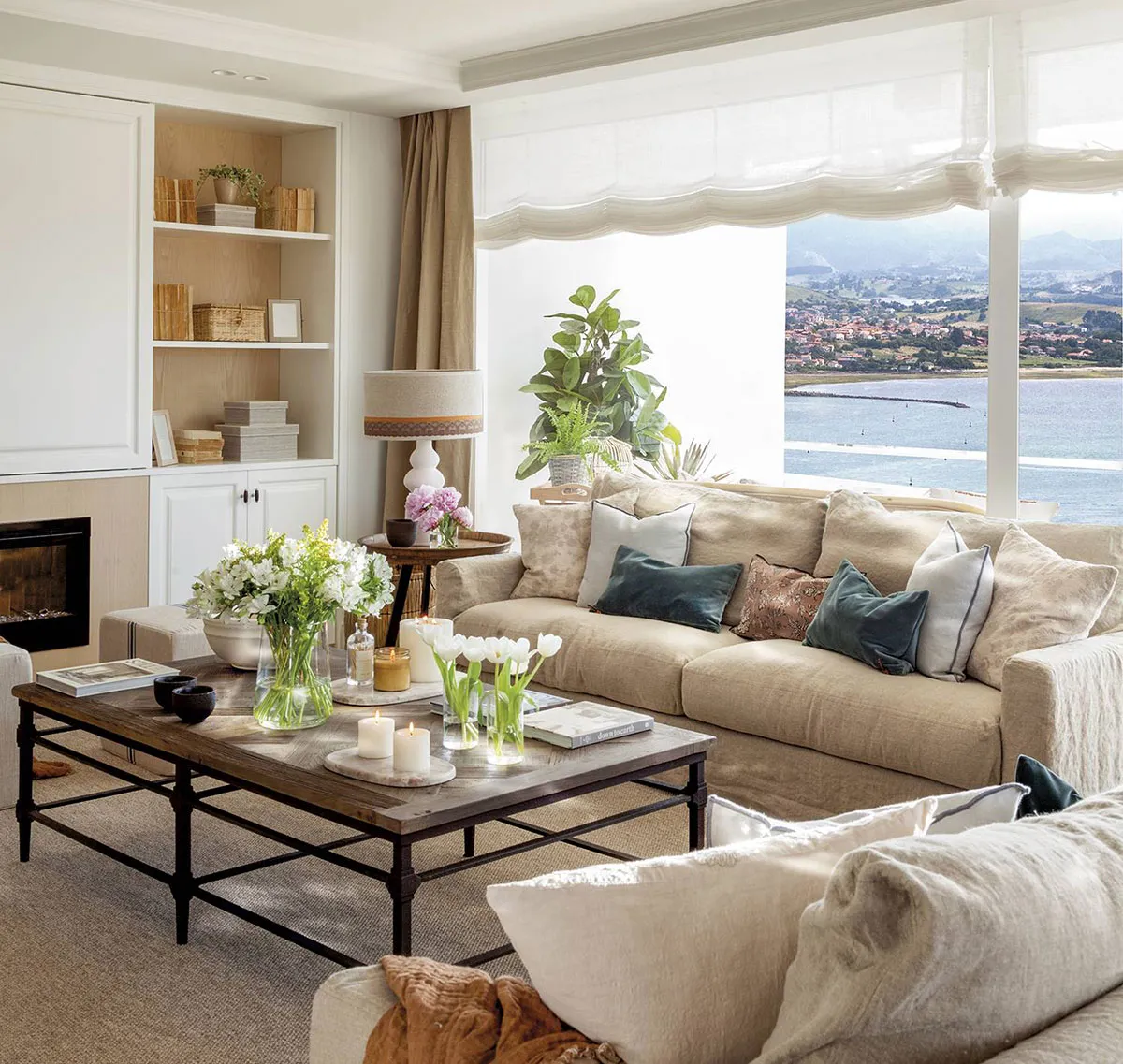 The interior of this beautiful country house in Portland represents the perfect blend of warm natural tones, elegant traditional furniture, and light modern accents in decoration.