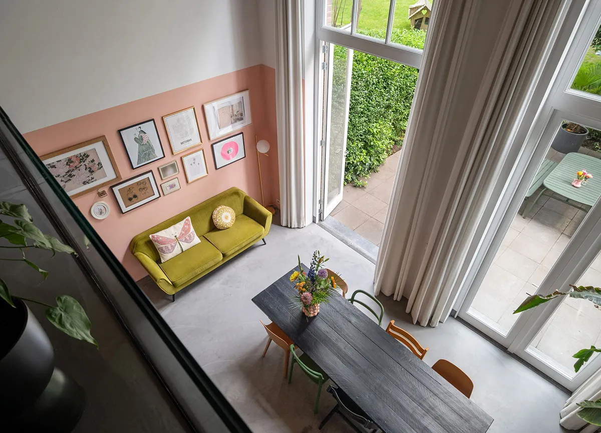 Bright Loft in Rotterdam with Floor-to-Ceiling Windows and Pink Wall