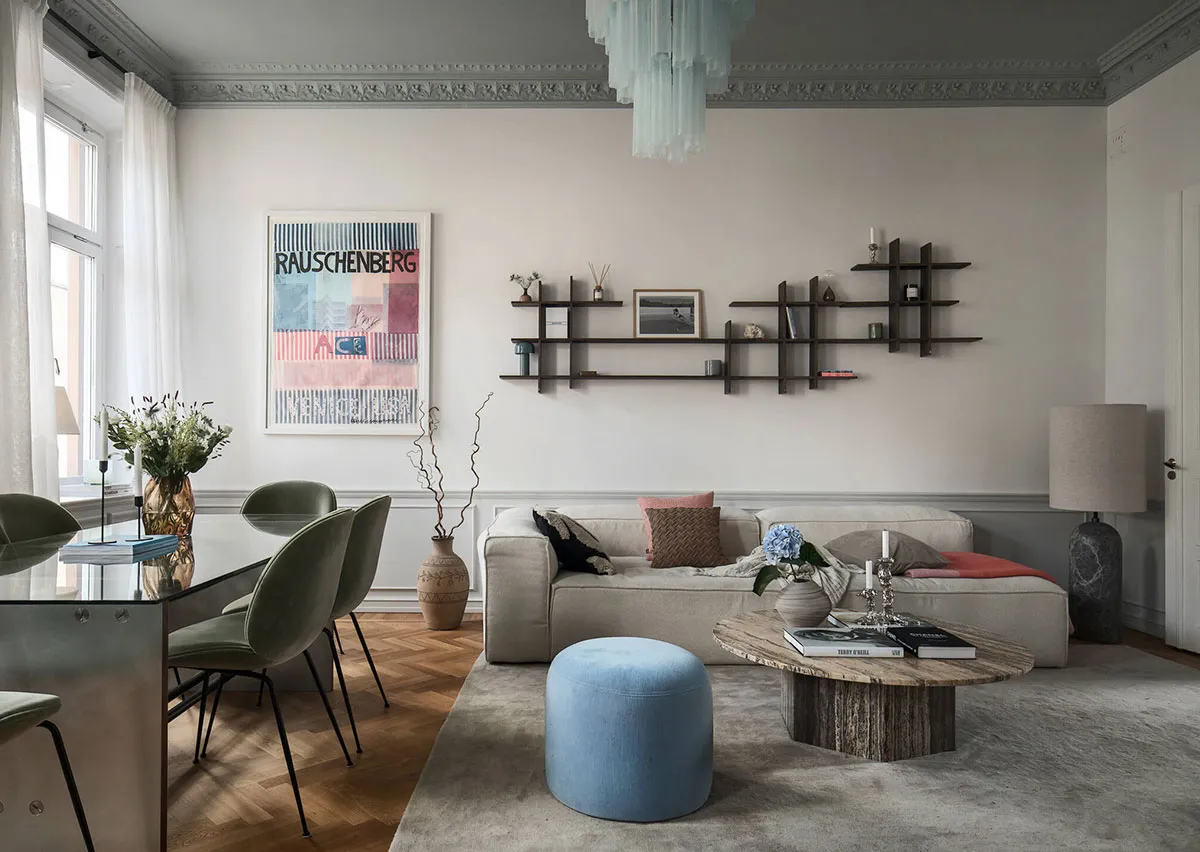 Peaceful and cozy interior of Elle magazine editor in Stockholm