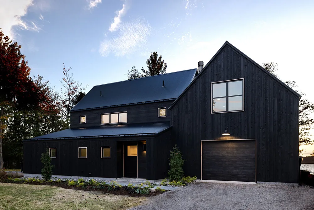 Black Facade and Cozy Interiors: Modern House by the Lake in the USA
