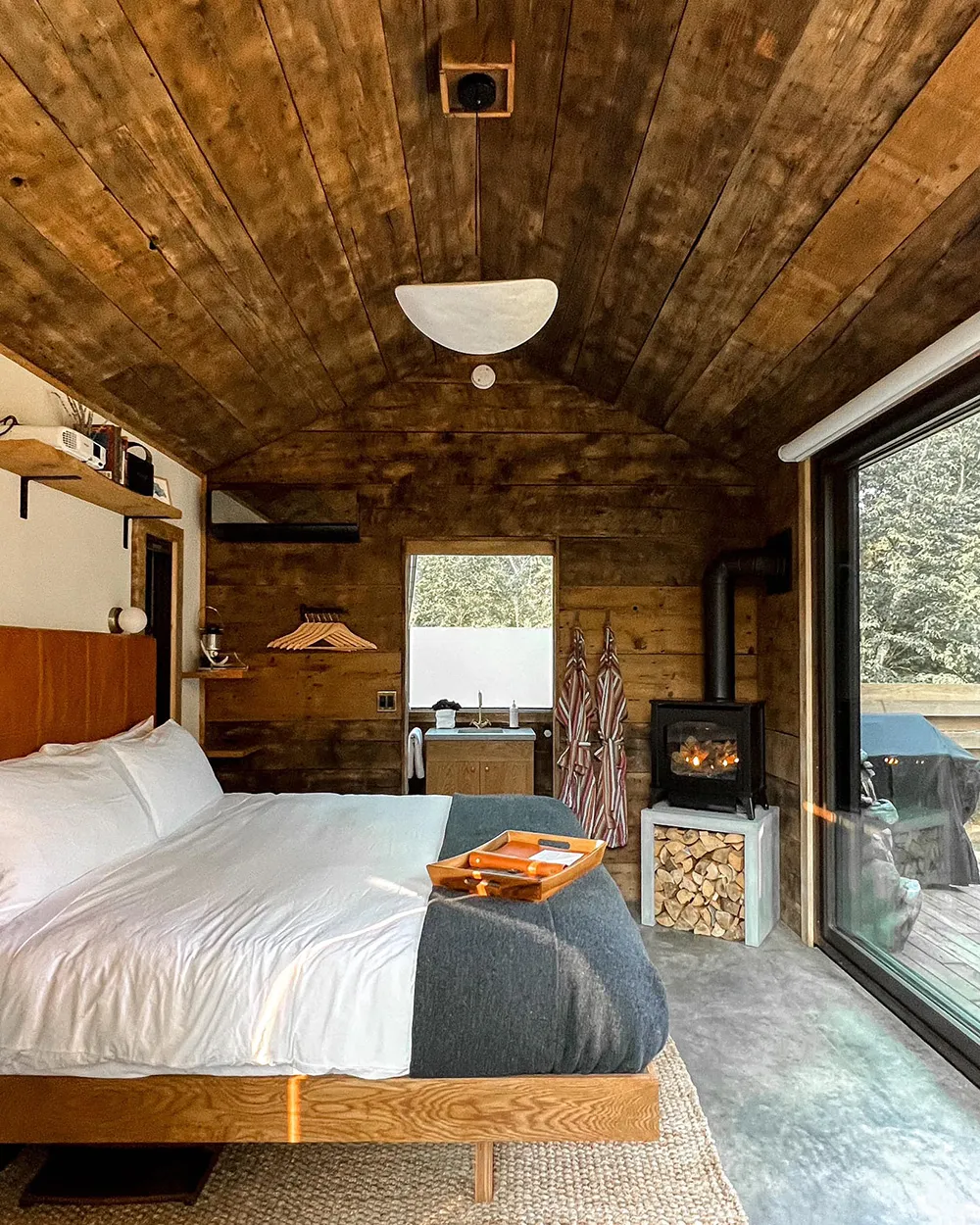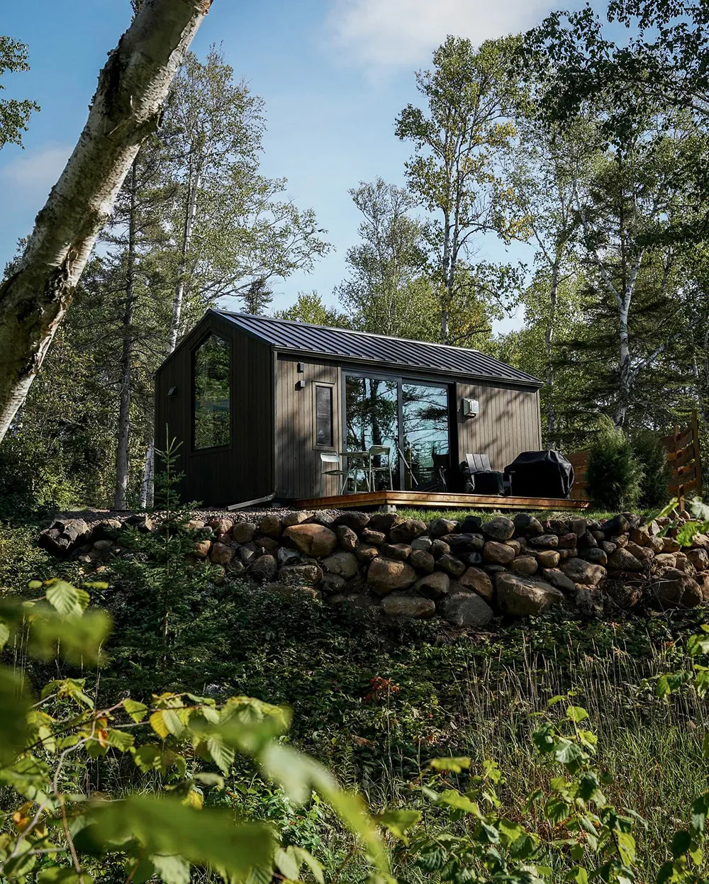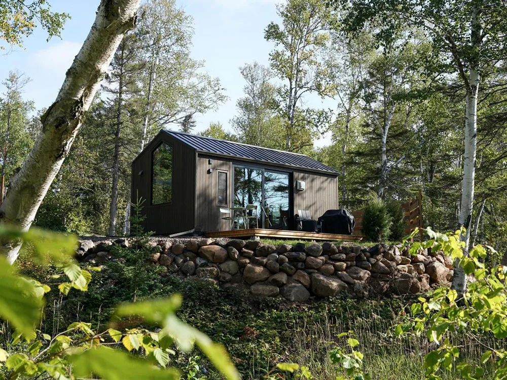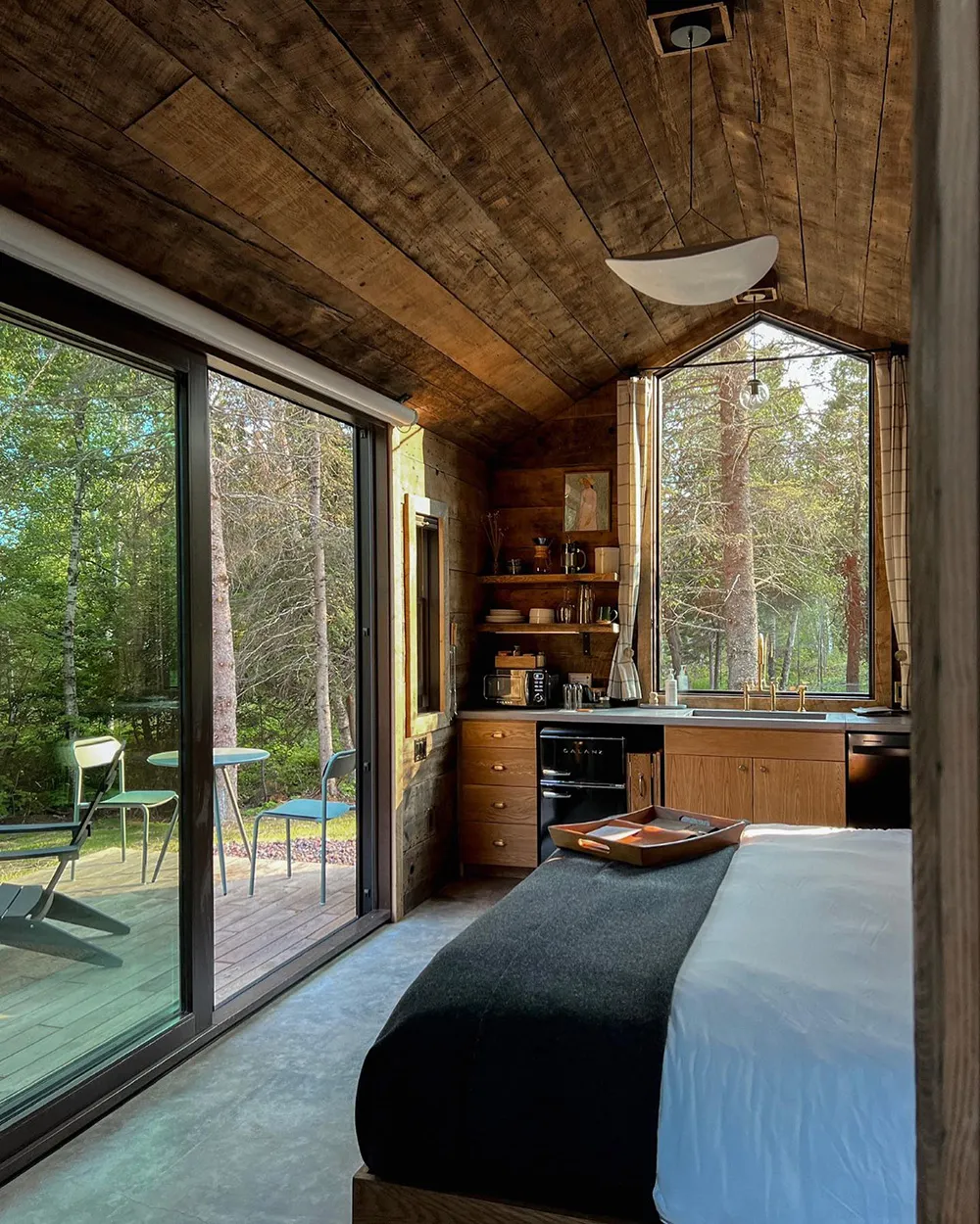 In this cozy modern wooden cabin tucked away in a forest in Minnesota, there's enough space for just one person or maybe two with a bit of a stretch.