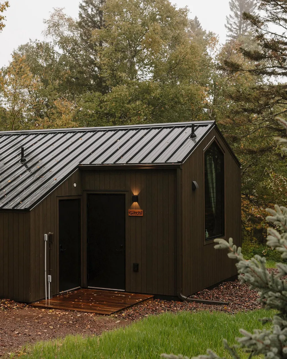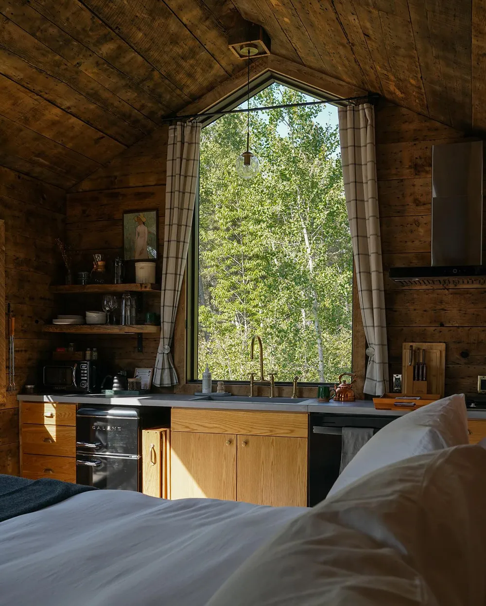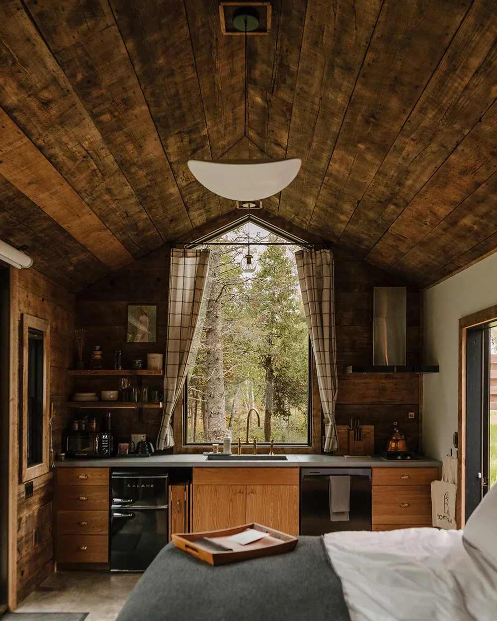 In this cozy modern wooden cabin tucked away in a forest in Minnesota, there's enough space for just one person or maybe two with a bit of a stretch.