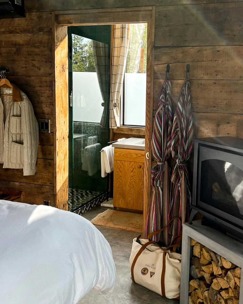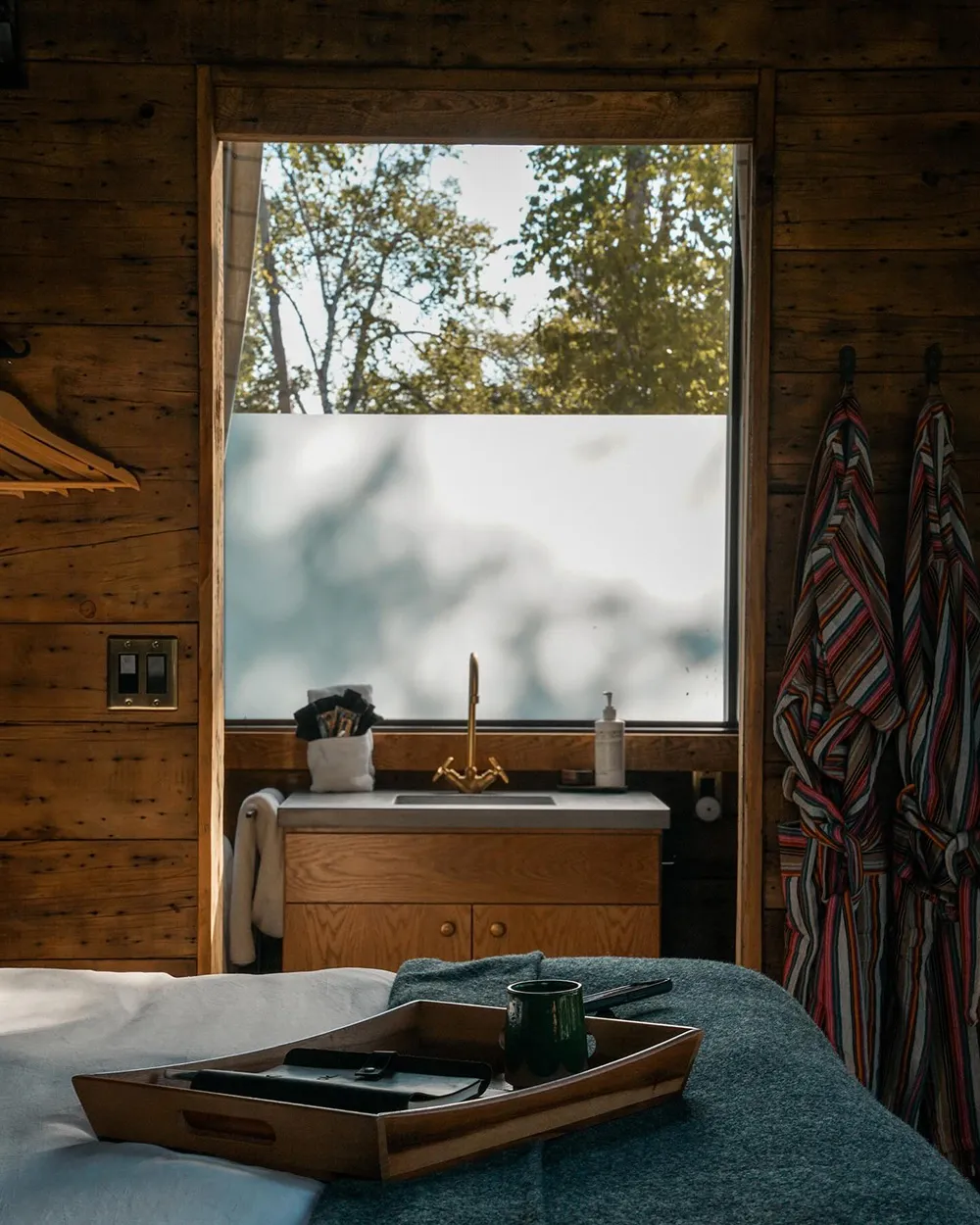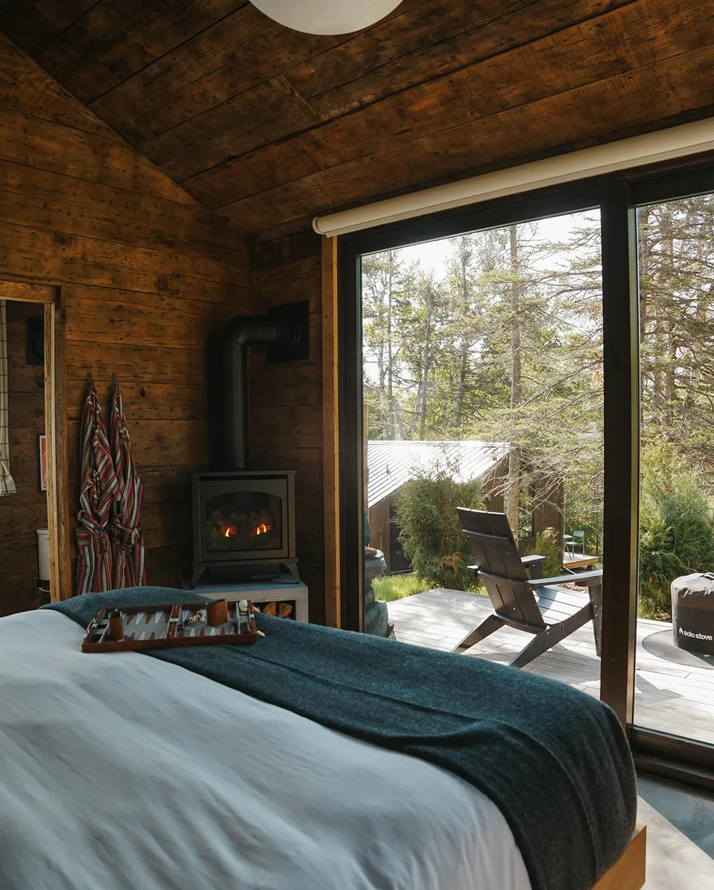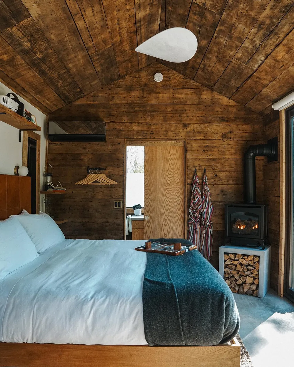 In this cozy modern wooden cabin tucked away in a forest in Minnesota, there's enough space for just one person or maybe two with a bit of a stretch.