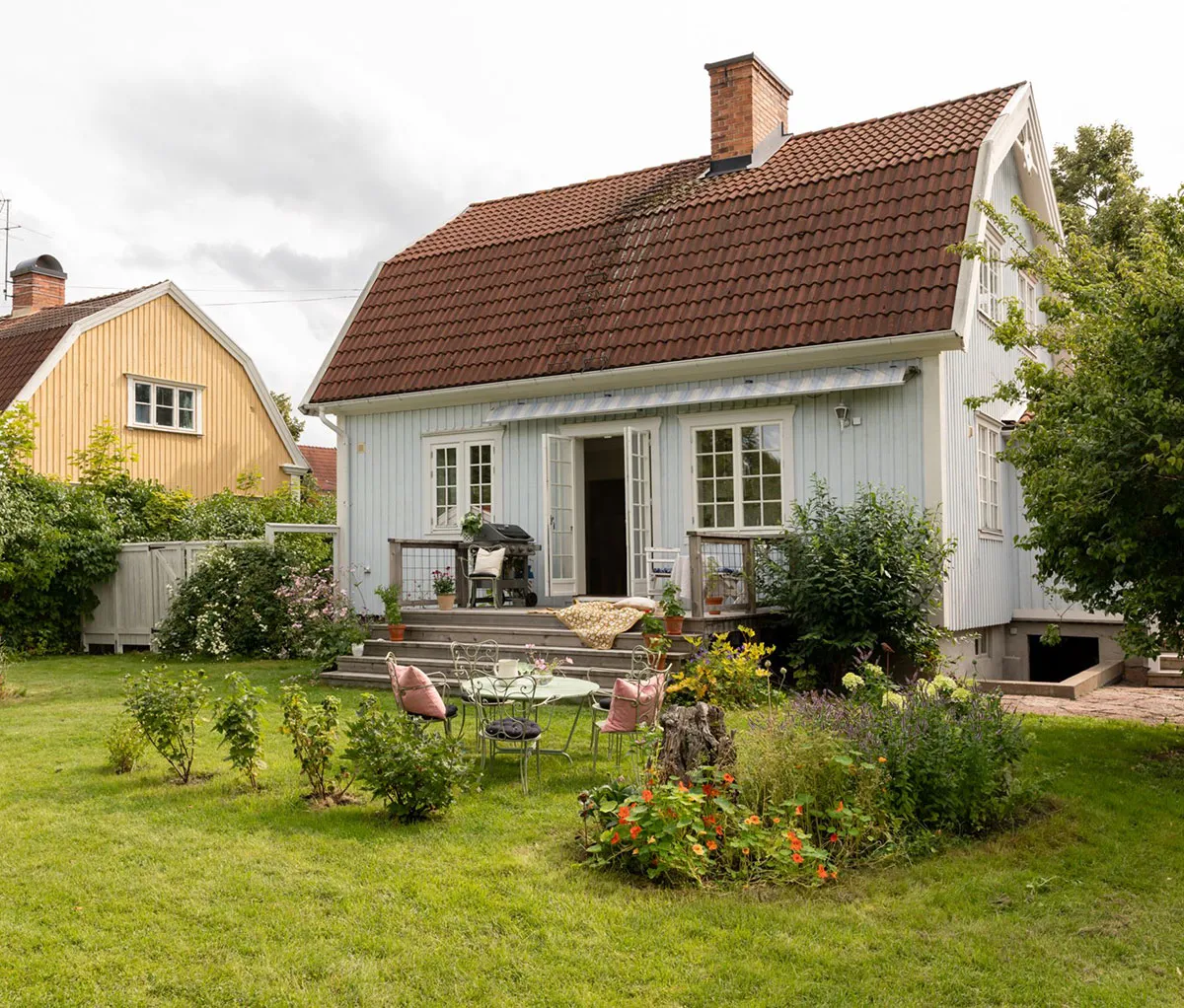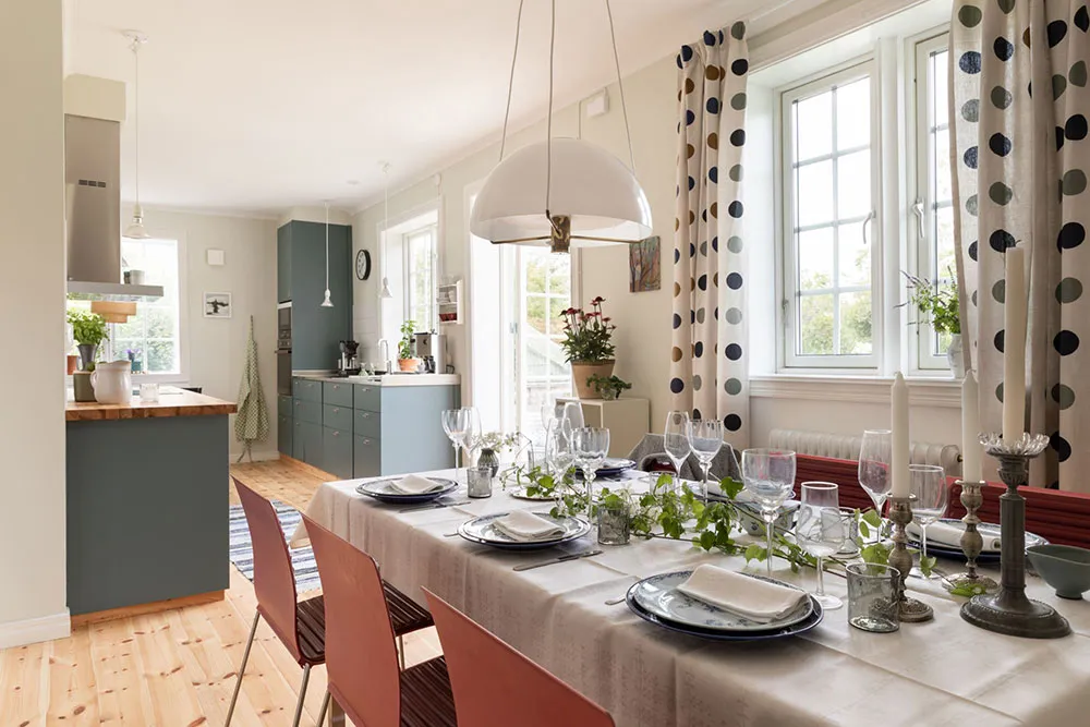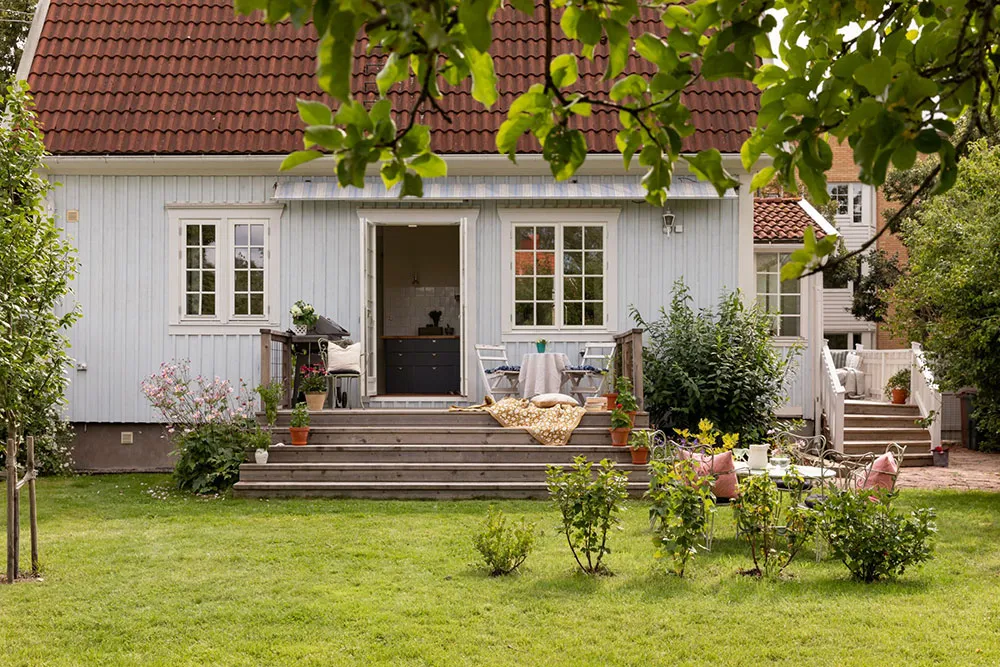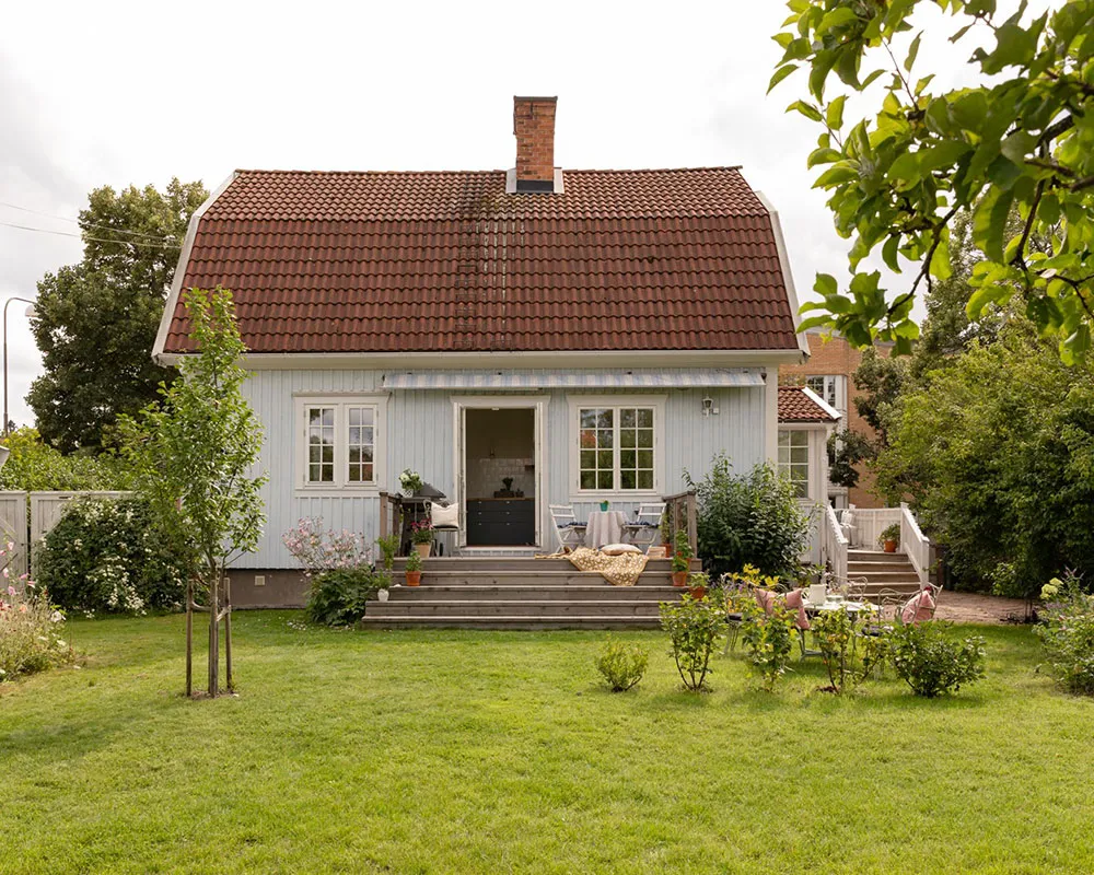 This Swedish cottage captivates with its soft pastel colors, skillfully arranged by the designer throughout the entire house, including its exterior.