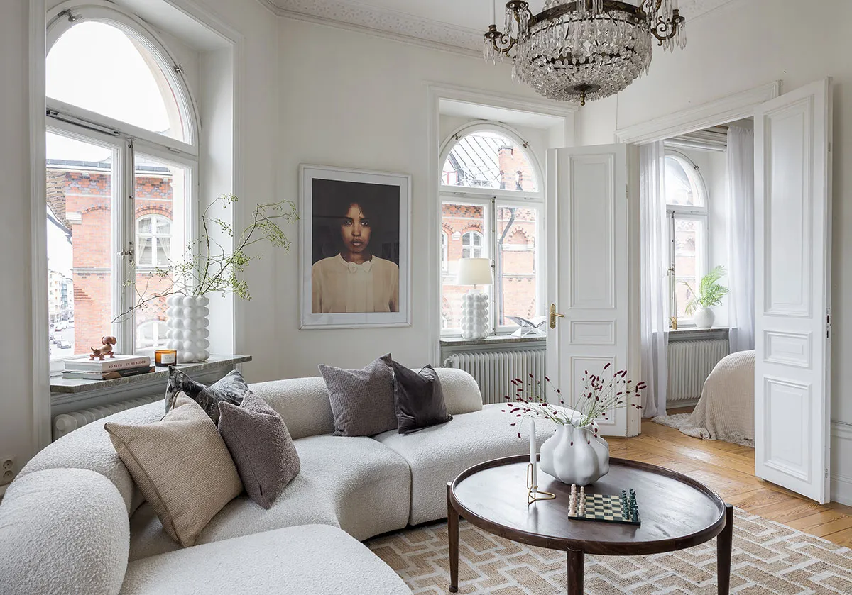 Elegant corner apartment with black-and-white kitchen in Stockholm