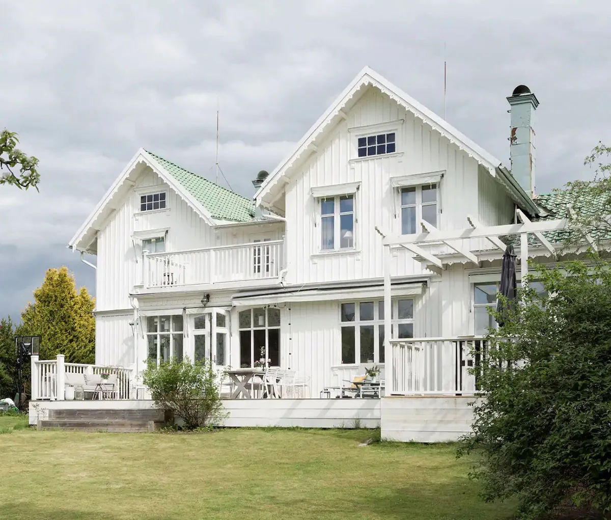 White cottage with veranda in Sweden