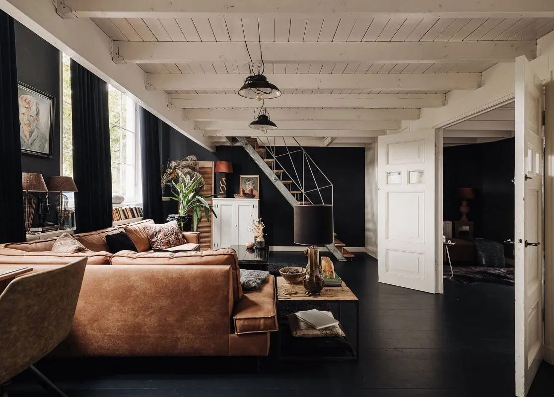 Black floors, white ceilings: amazing house in former school building in Netherlands