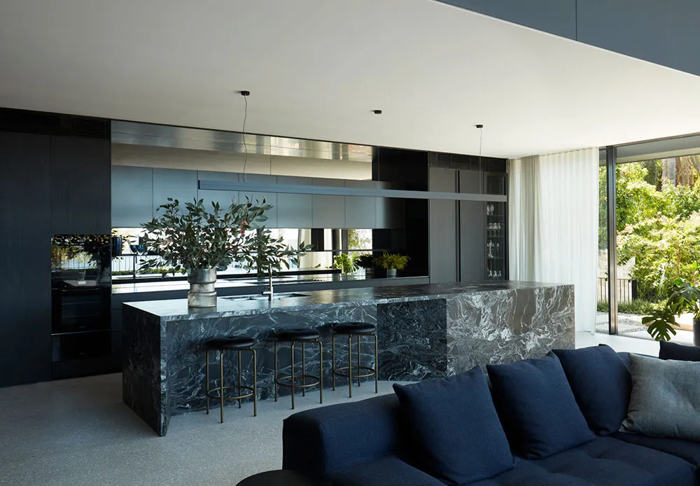 Although this project involved the renovation of a 1980s-built house in Sydney, the mansion now looks like a very stylish modern new construction.