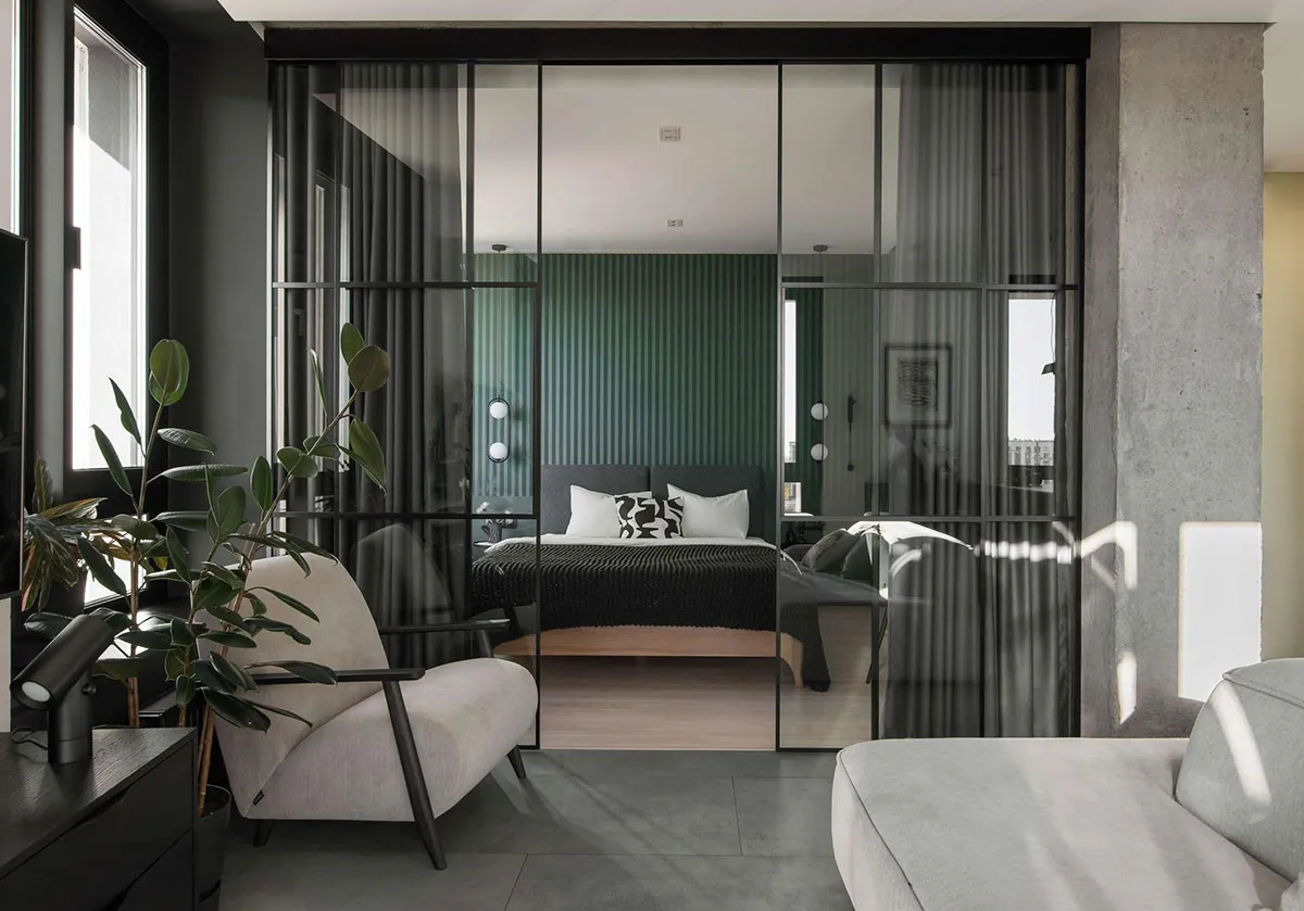 Stylish black and white interior with green accents for a young family in Kyiv (69 sq. m)