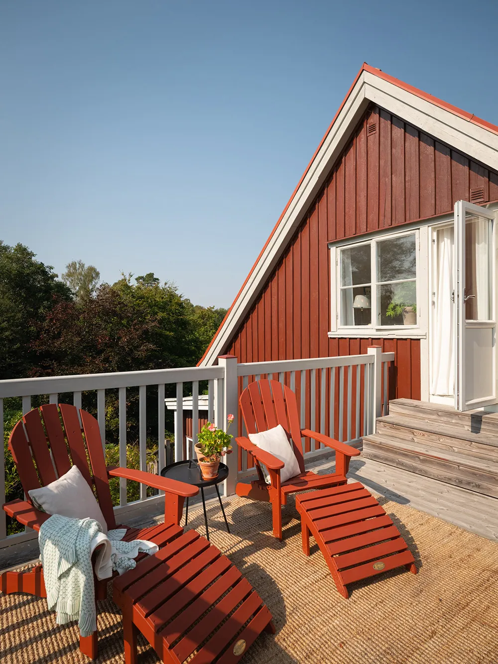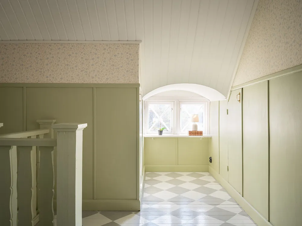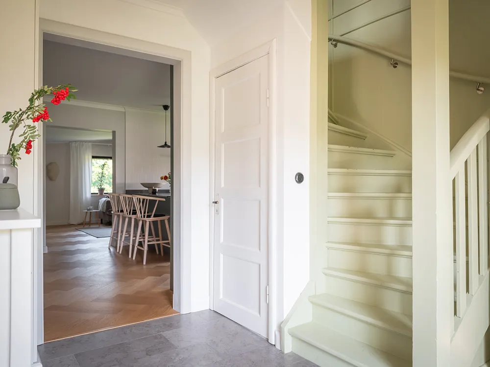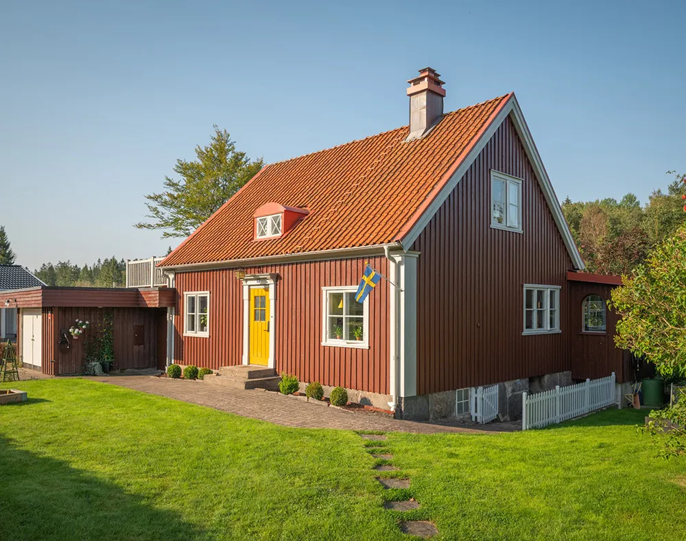 Today, only a beautiful red facade with white windows speaks of the fact that this traditional Swedish cottage was built 100 years ago — inside the house, there are no longer any reminders of past times.