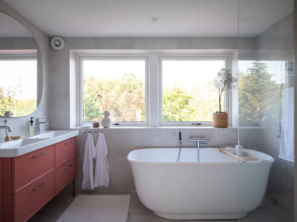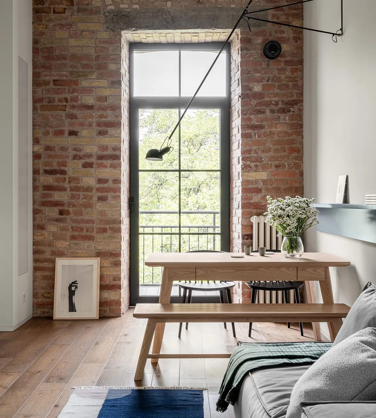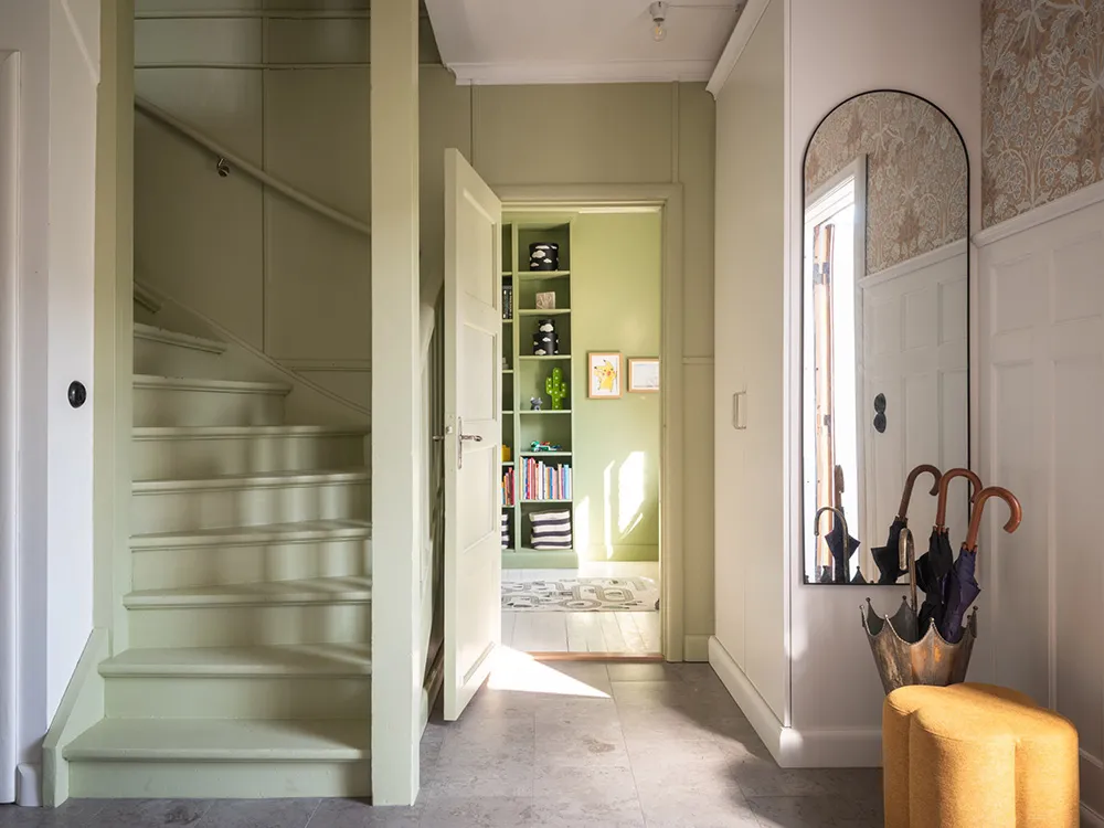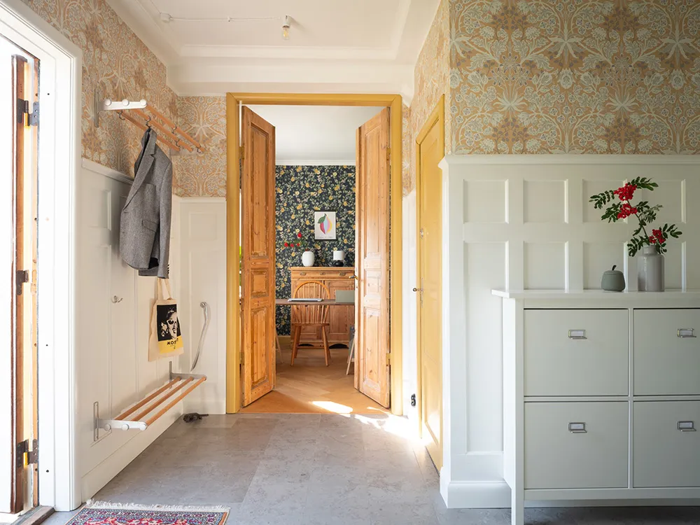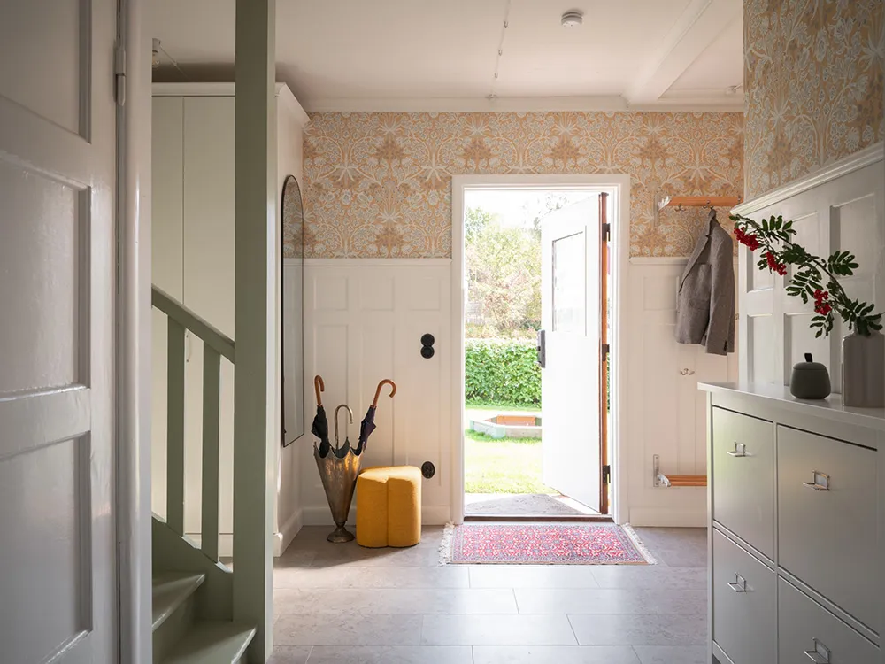 Today, only a beautiful red facade with white windows speaks of the fact that this traditional Swedish cottage was built 100 years ago — inside the house, there are no longer any reminders of past times.