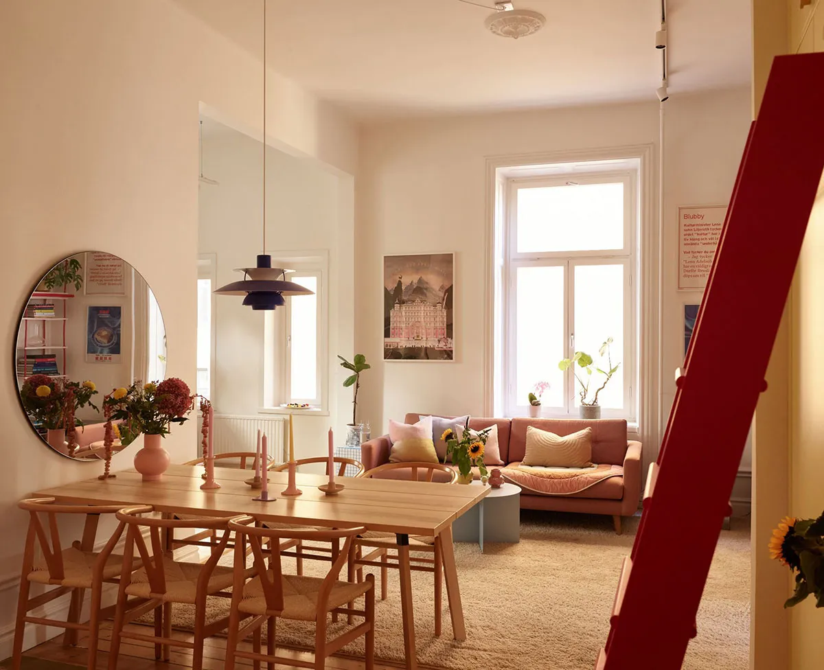 Pink-pastel and other soft hues in the design of a small Swedish apartment (54 sqm)