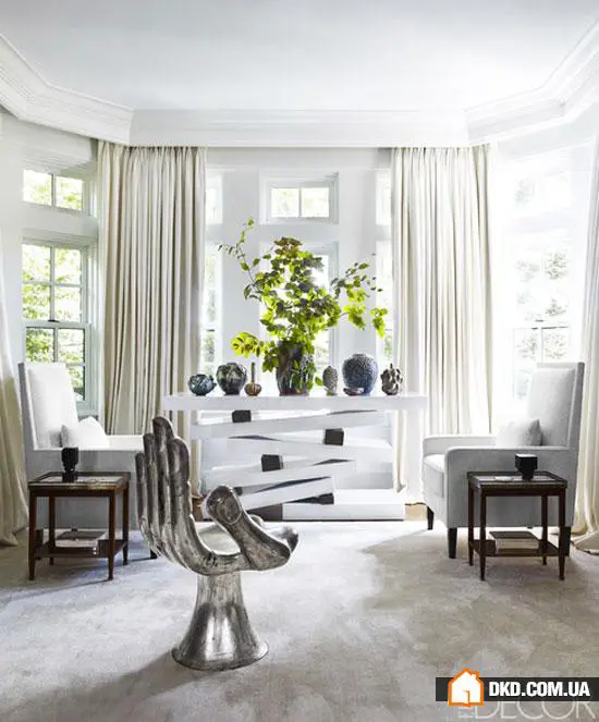 Expanding the kitchen in this Toronto home turned into an exciting journey, transforming the house into a remarkable art object. Moving from room to room, one can notice how each artwork sets the rhythm and tone of the space. Sometimes it's a painting, sometimes a sculpture, and in one of the rooms there is even a taxidermy white peacock. The 'exhibits' here are quite unusual, just like the interior itself, which blends classic elements with modern, retro and even grunge styles. The home is adorned with paintings by contemporary artists George Condo, Mikaela Thomas and Alex Katz. In this interior, even the unlikely combination of Tiffany blue with leopard print doesn't seem wild. The glassed-in porch with a view of the garden resembles glass enclosures in a zoo, as if a leopard might jump through the glass or a bright-winged parrot flaps its wings. We found the splash carpet in the study and the palm-shaped armchair particularly beautiful in this interior. What did you like about this space?