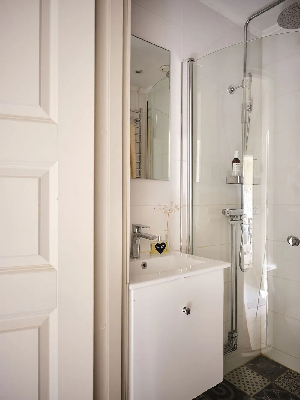 Snow White Apartment in Paris with Mezzanine and Pink Accents (54 sqm)