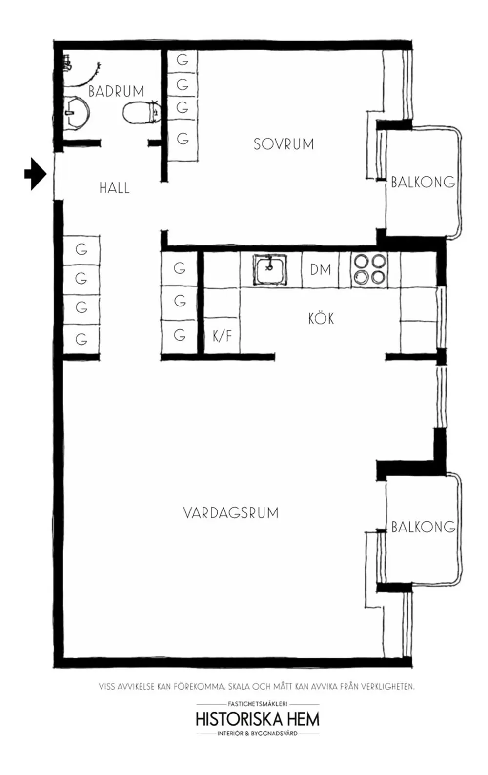 The area of this two-bedroom apartment in Stockholm is only 55 sq.