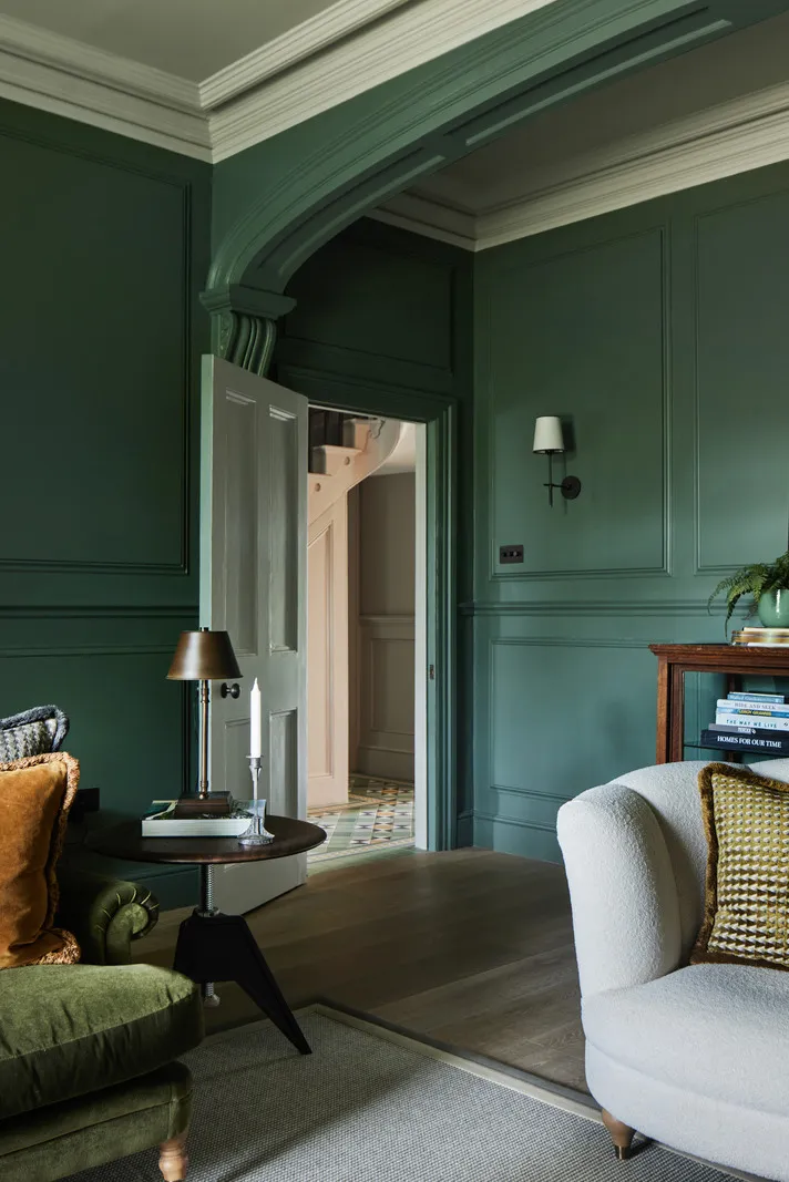 Classical Architecture and Green Living Room: Villa Update from the 19th Century in England