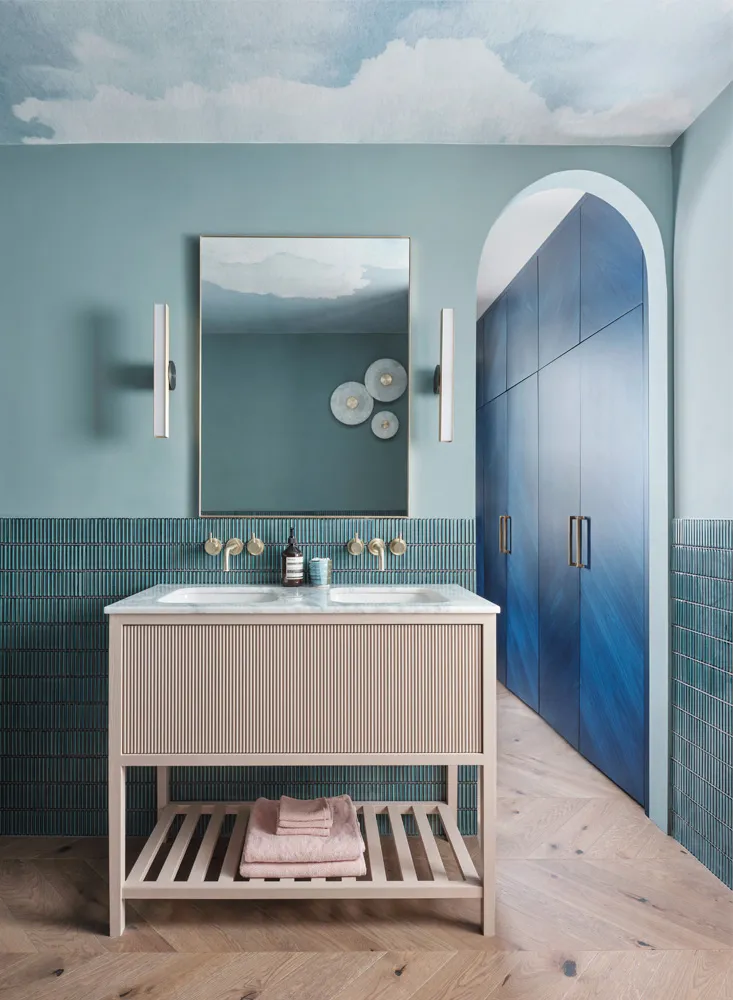 Pink, blue and other pleasant pastel tones in townhouse interiors in London