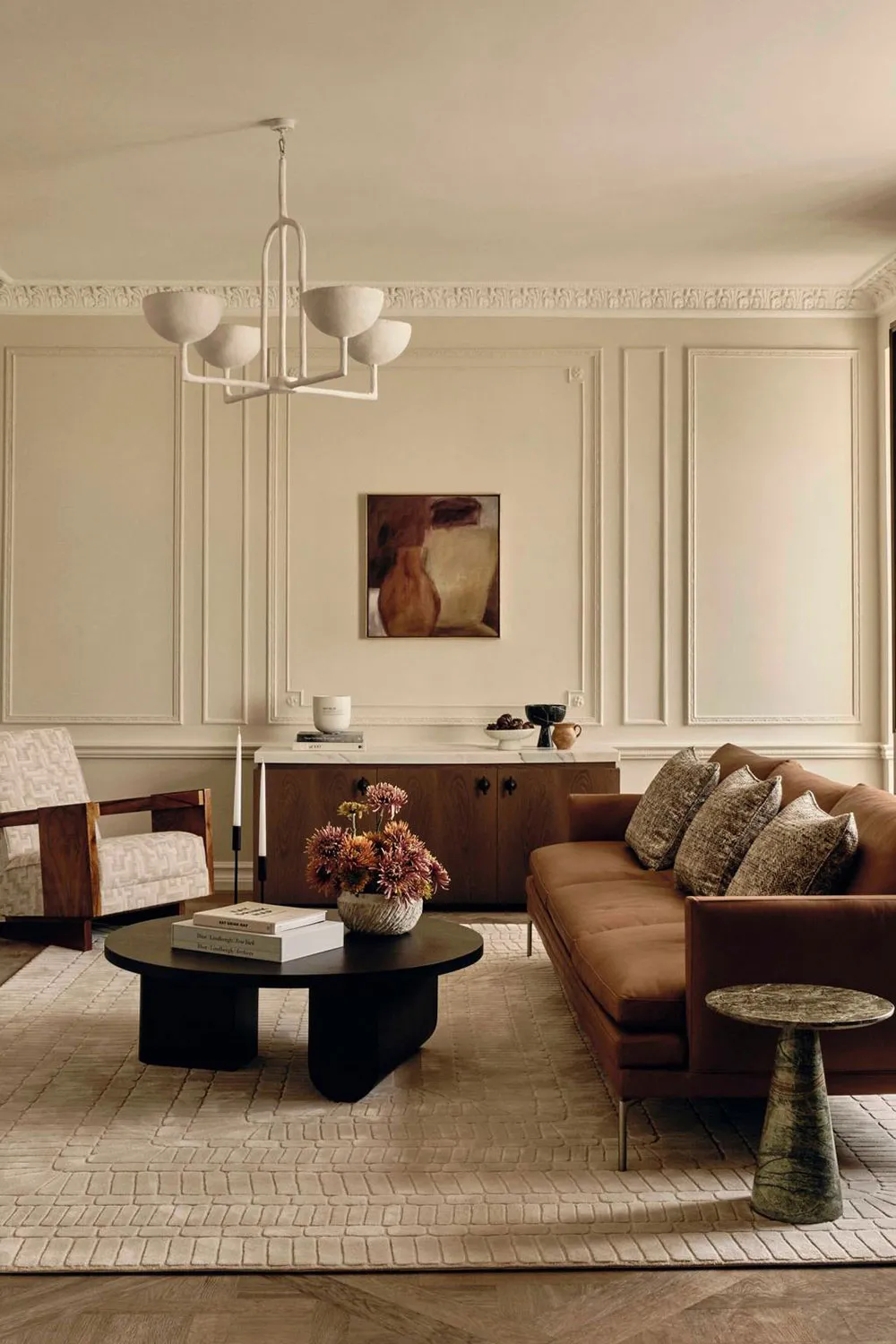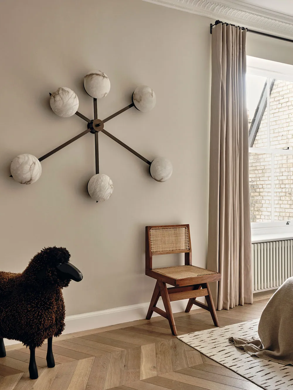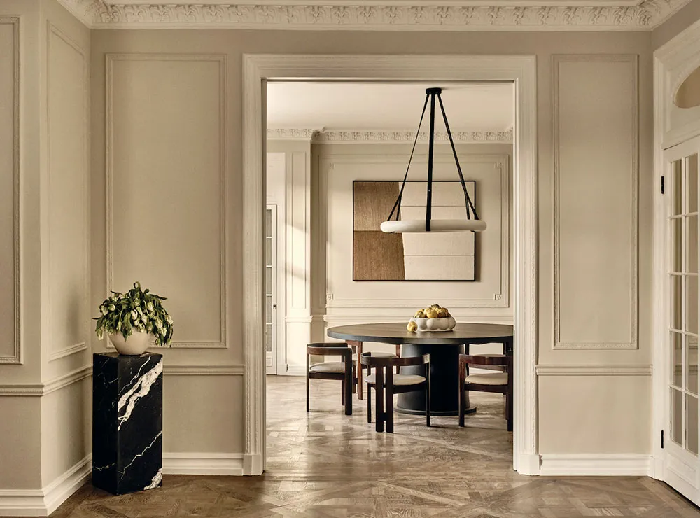 Classic spaces with elegant moldings and cornices, refined and occasionally bold modern furniture, art pieces, and noble color palette — this London interior reflects the signature of Banda Studio.