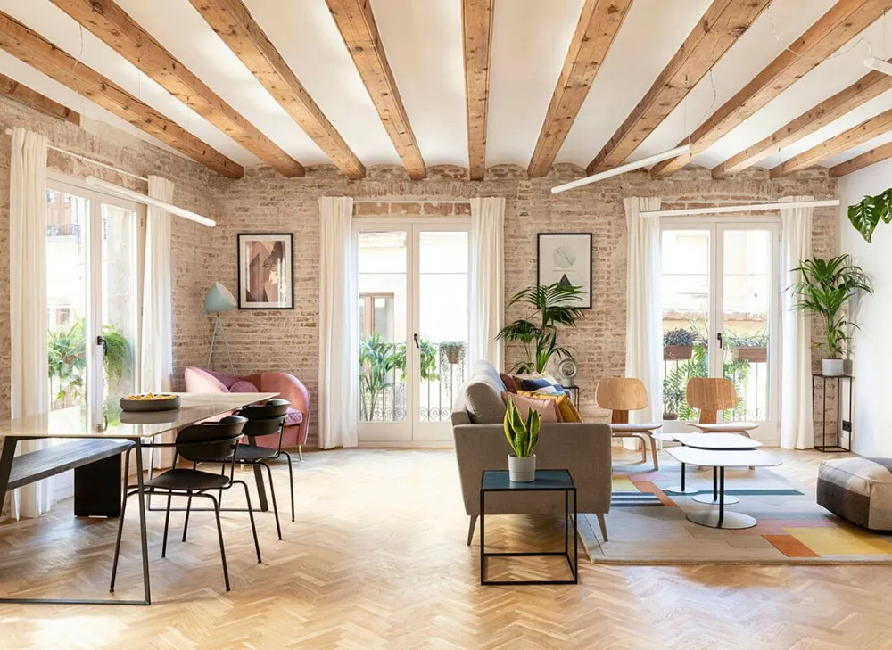 Stylish rental apartment in Barcelona with beams and brick walls