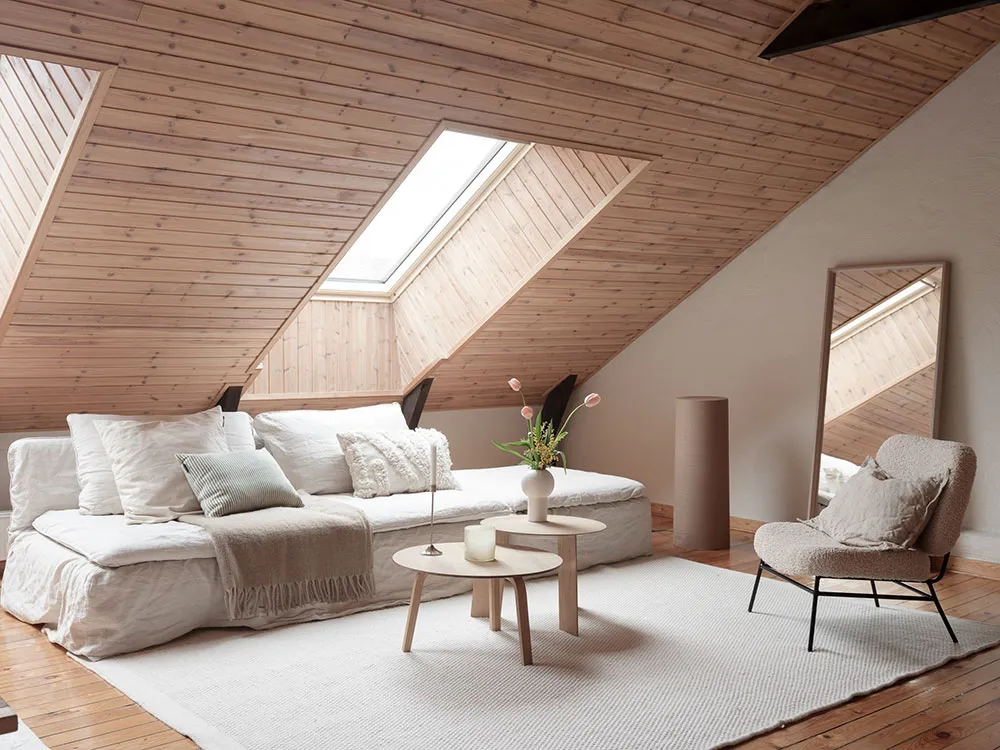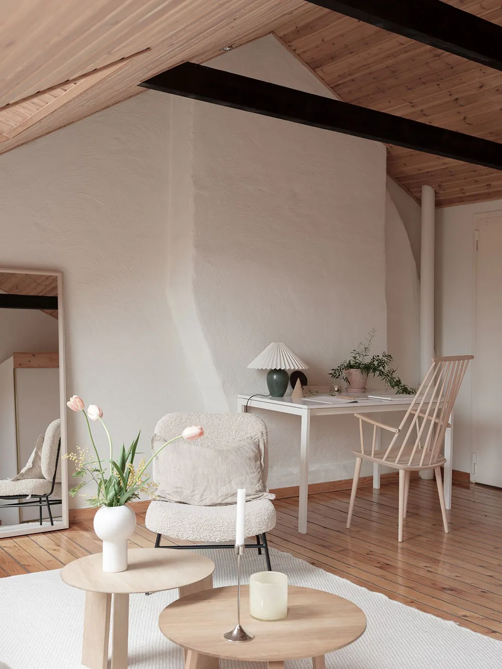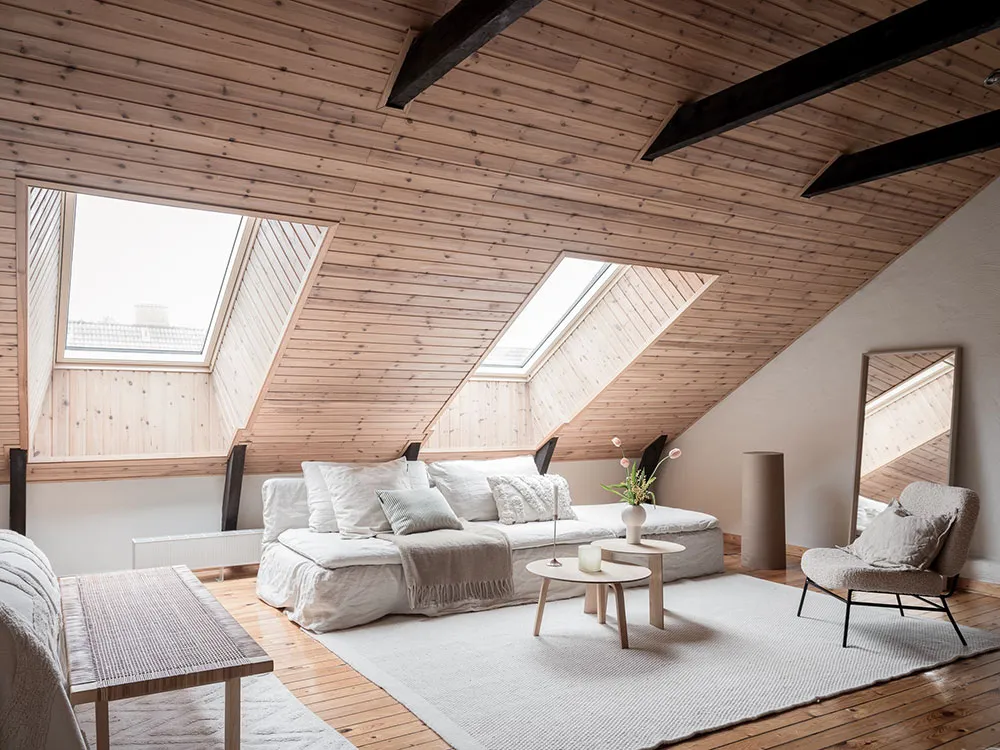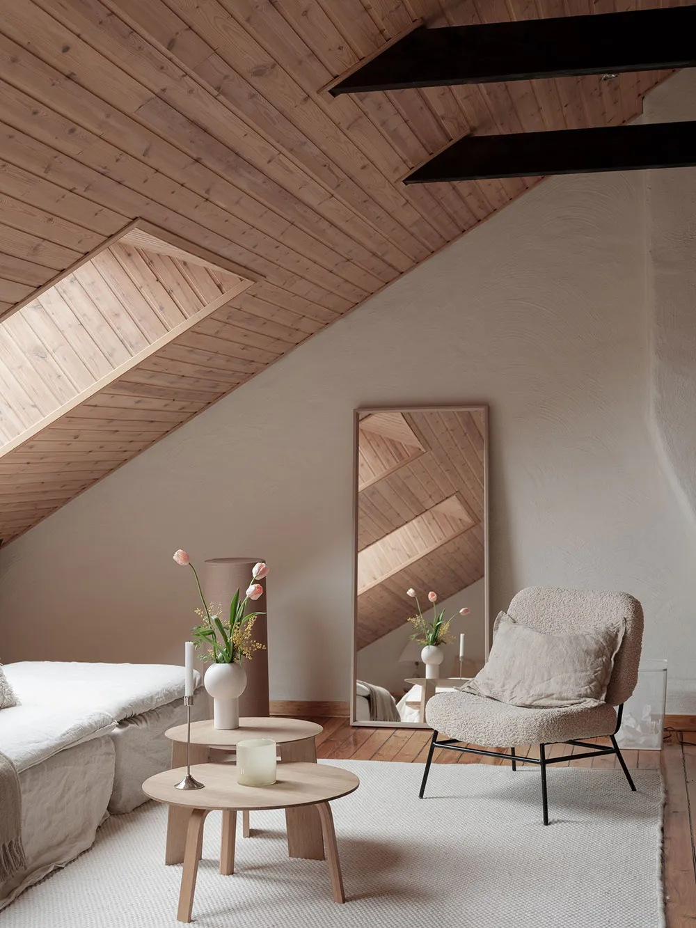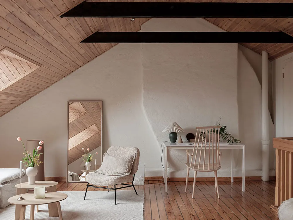 Abundance of Wood and Milk Textile: Cozy Loft in Sweden (81 sq m)