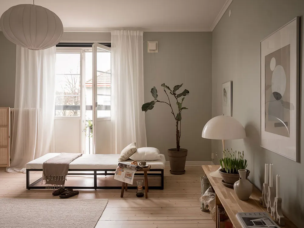 Peaceful and cozy interior of Elle magazine editor in Stockholm