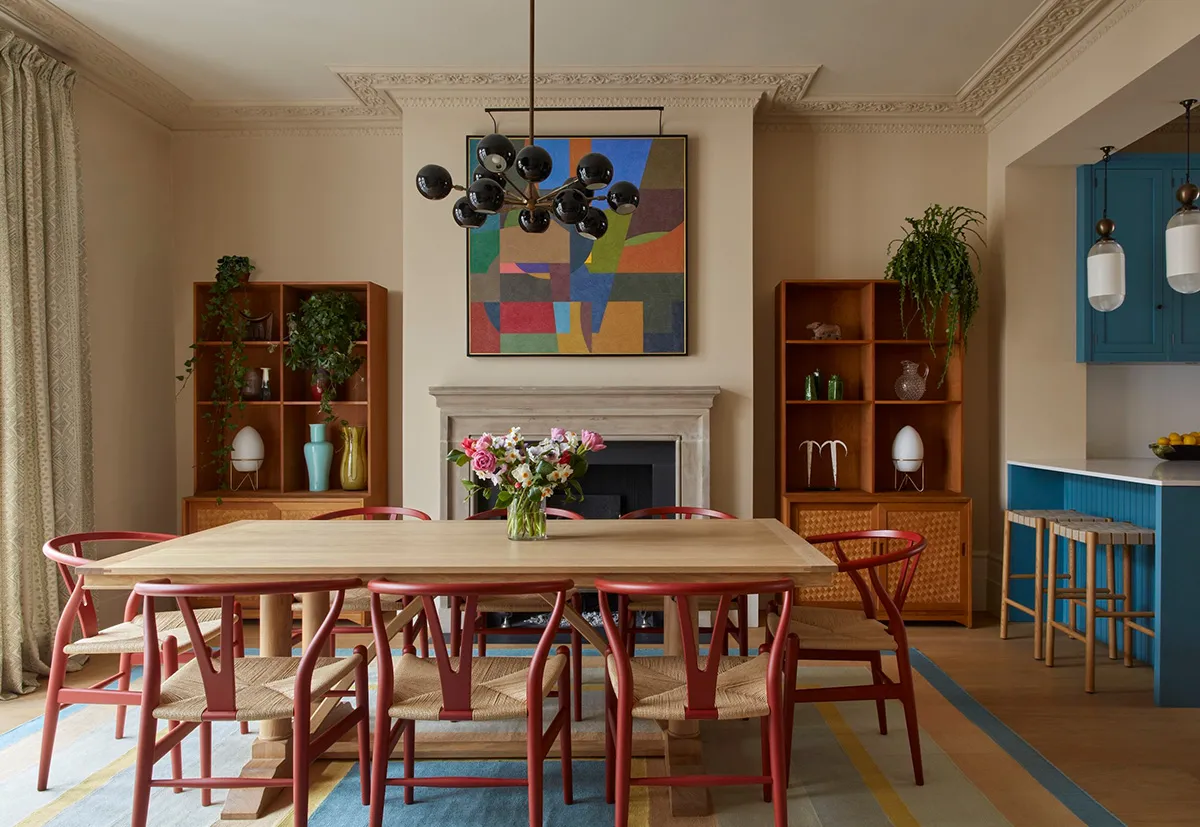A riot of colors and diverse patterns are the key elements that shape the updated design of this Edwardian townhouse in London.