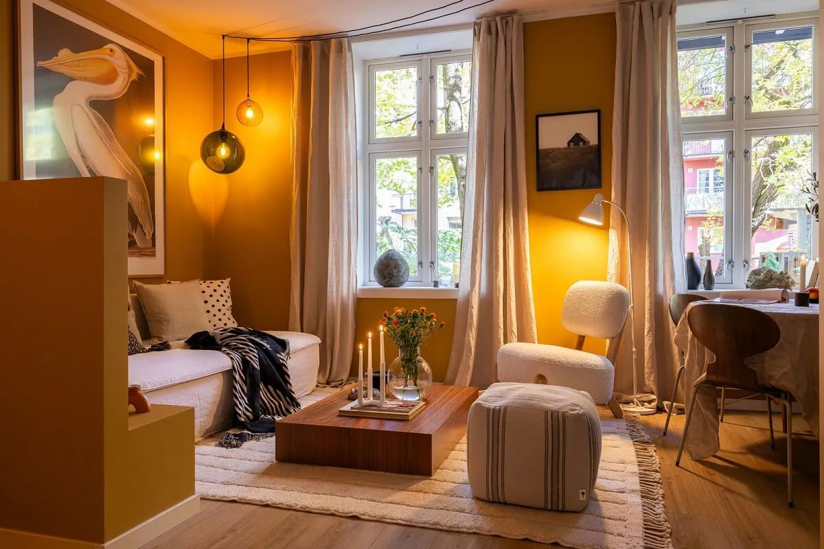 Small but cozy apartment in Oslo with yellow living room (43 sq. m)
