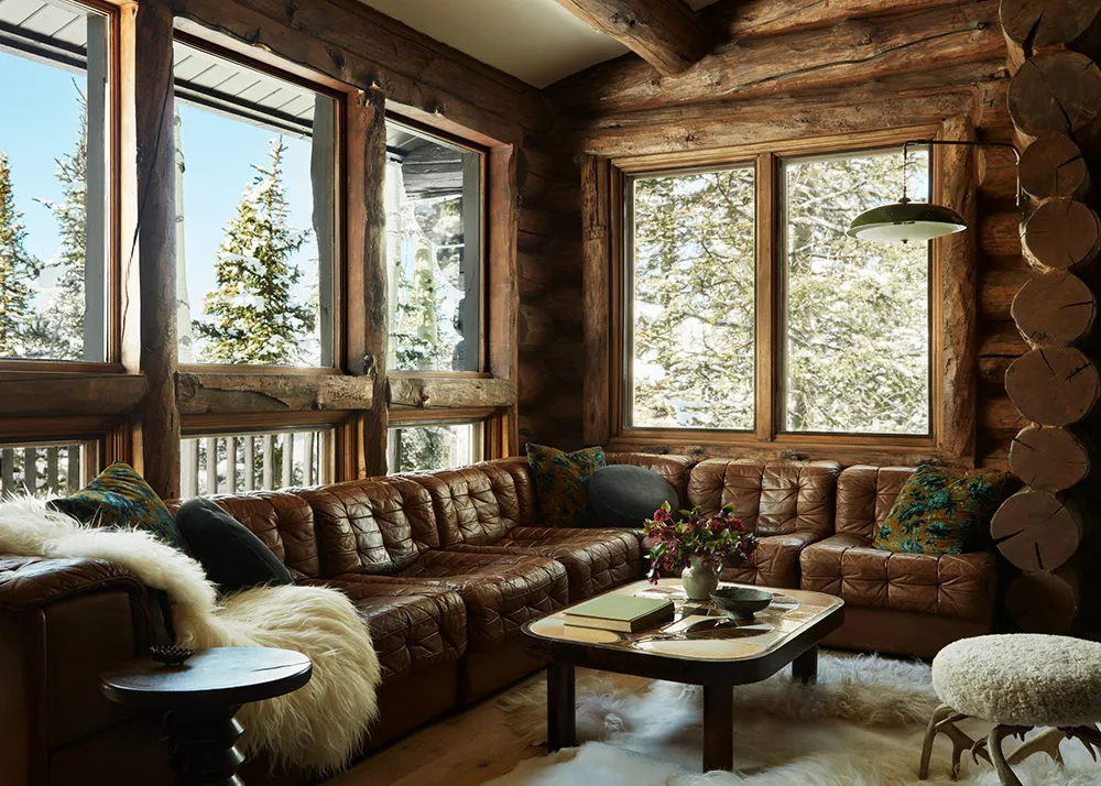 Eclectic Interior of a Log Cabin House in Colorado Mountains