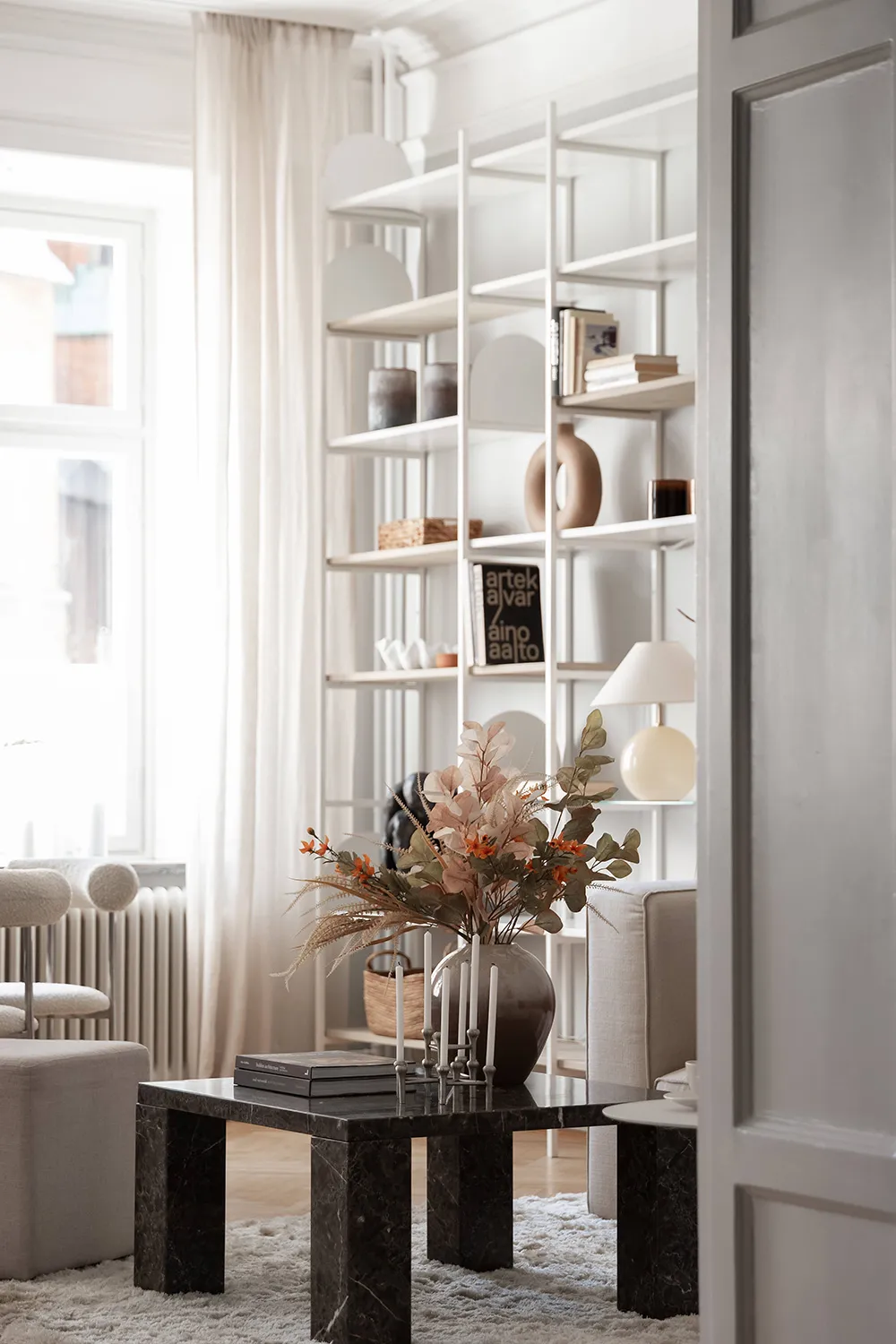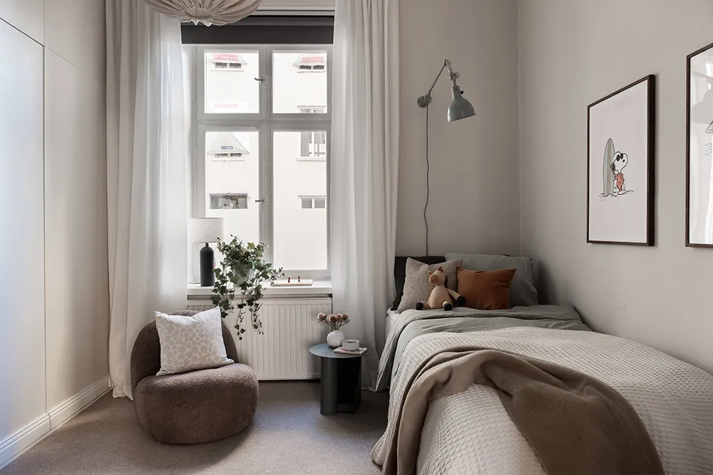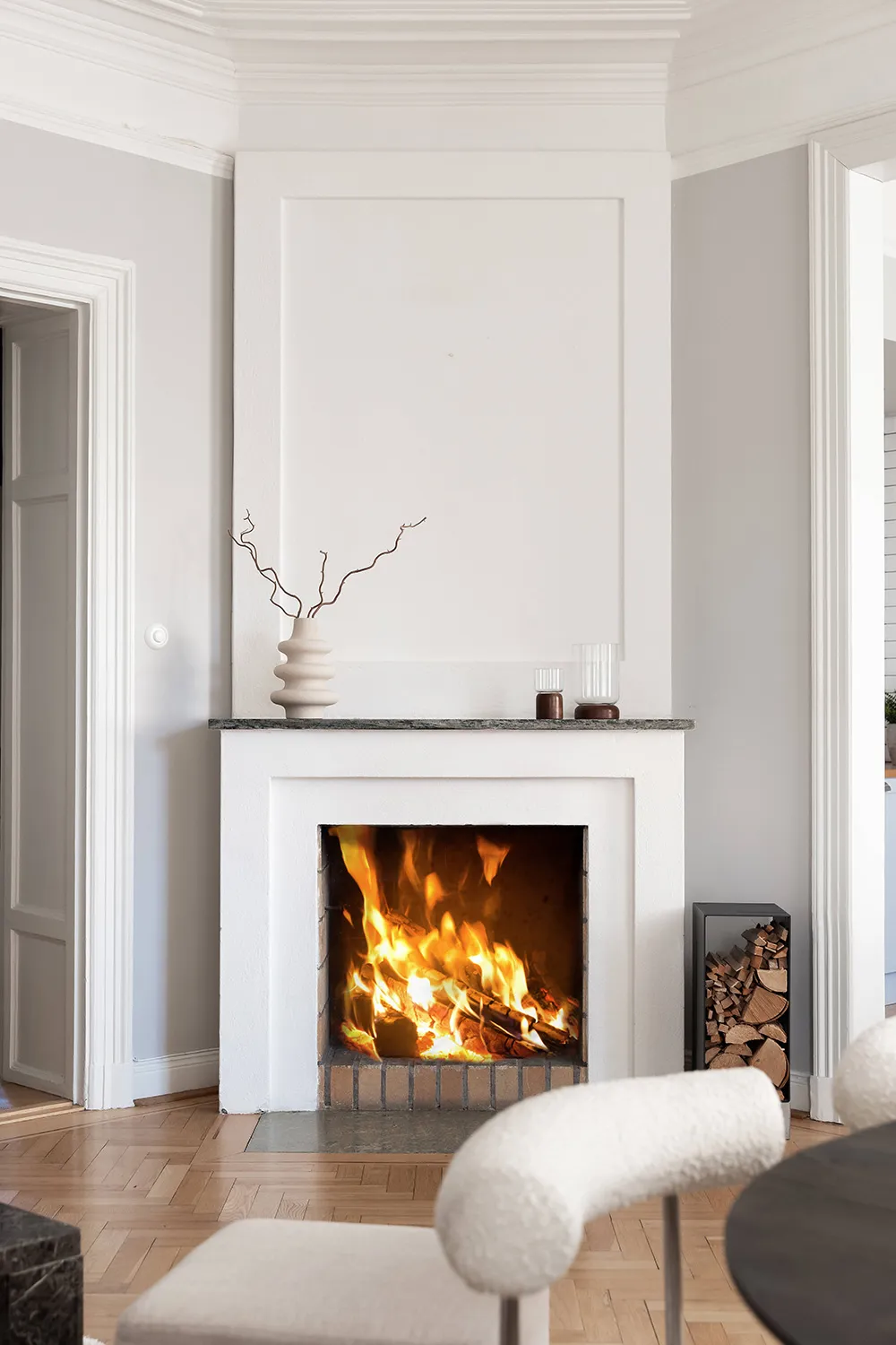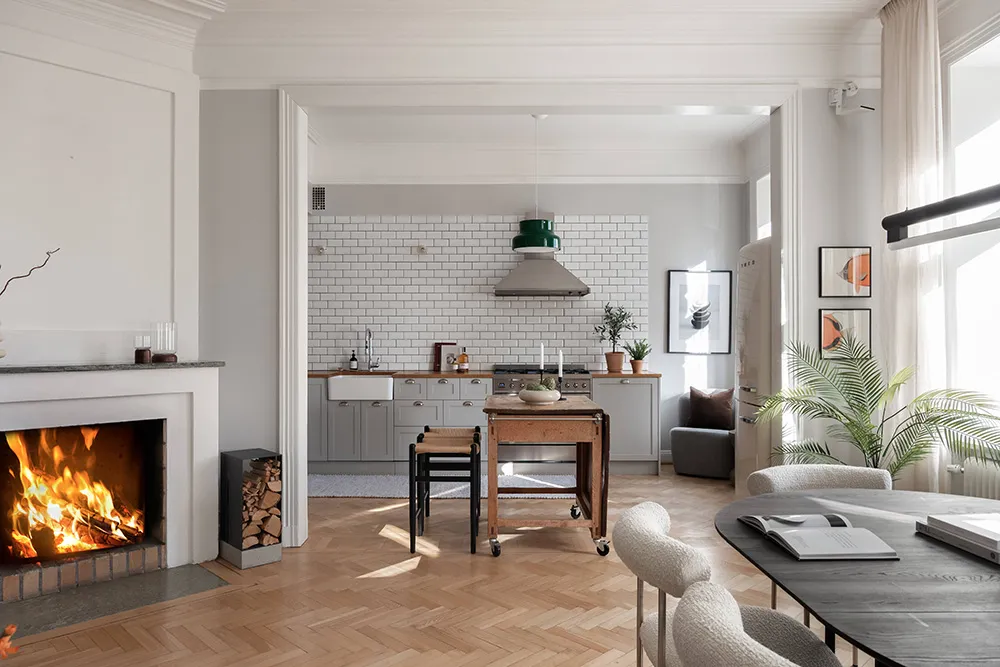 Soft Apartment Interior with Fireplace on the First Floor in Stockholm (81 sq m)