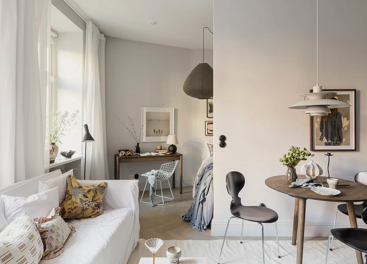 Soft Interior with Cool Accents: Small Apartment in Göteborg (33 sqm)