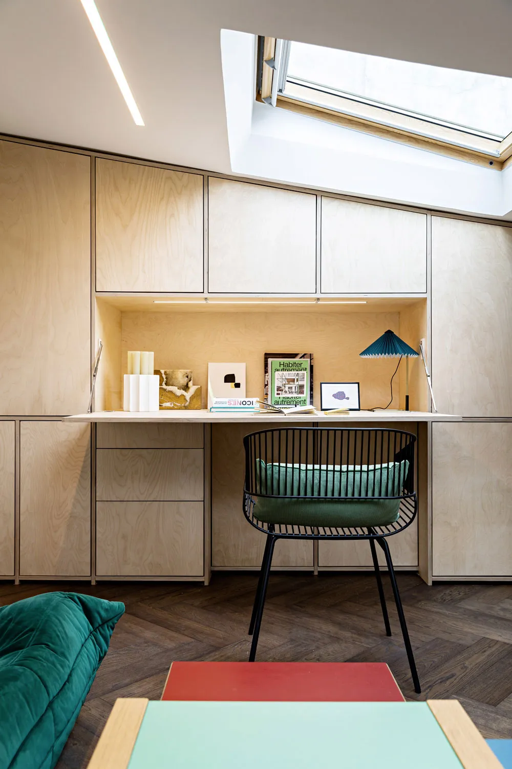 Today we have a bright apartment in Paris located in an interesting space under the roof of an old building.