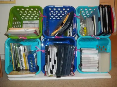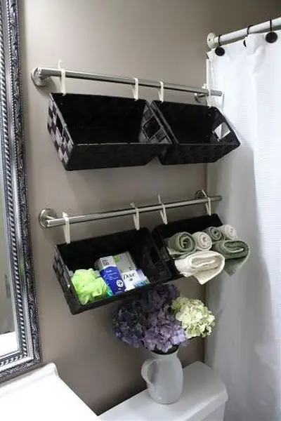 Para cosas más grandes, funcionan las cestas de plástico. Se pueden combinar y colocar en diferentes lugares. Estas estanterías se ven muy bien tanto en una habitación como en un baño. Se pueden apilar unas sobre otras, colgarlas o usar combinaciones de colores diferentes. Todo dependerá del estilo y del lugar donde necesites colocar esta importante pieza.