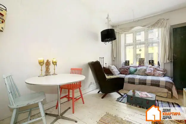 Sala de estar y dormitorio en una sola habitación: una solución exitosa de Dinamarca