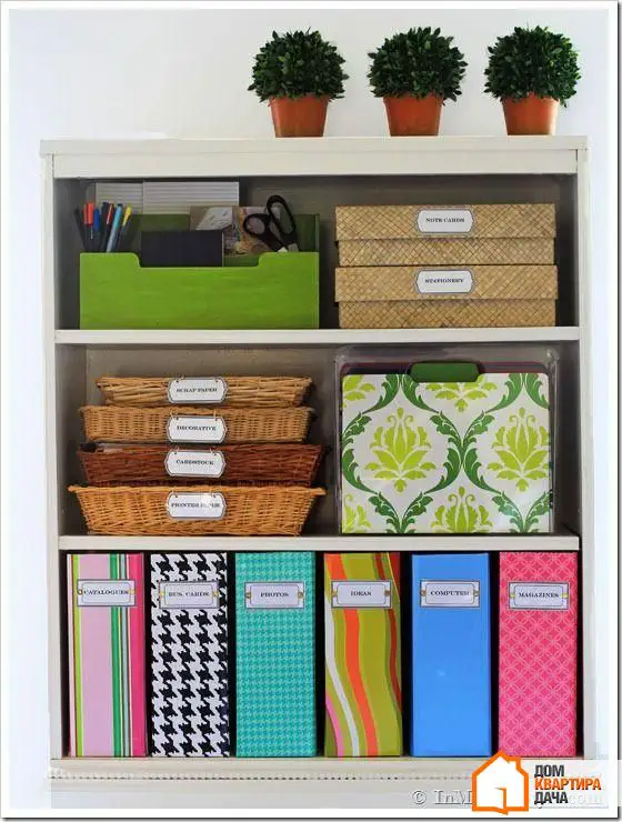 Hay muchas opciones de almacenamiento, solo necesitas un poco de imaginación: archivadores, carpetas colgantes, bolsillos para calzado en la puerta (que también sirven para pequeños artículos). La ropa puede guardarse por colores en cestas separadas, y los accesorios y joyería colgarse de perchas para ropa. Considera el espacio no utilizado: entre muebles, debajo de la cama o encima de las mesas pueden colocarse utensilios, cajas y estantes para almacenarlos.