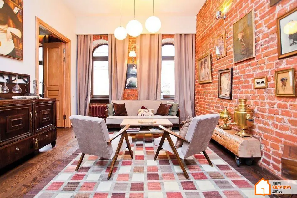 Teniendo en cuenta que el estilo loft llegó a nosotros desde Occidente, los dueños de esta vivienda hicieron un gran esfuerzo para integrar elementos de la cultura rusa en el espacio. Gracias a su afición poco común —recolectar muebles y decoraciones de la época soviética—, aquí apareció mueble restaurado de esa época y un samovar que coexisten con paredes de ladrillo y suelos rústicos.