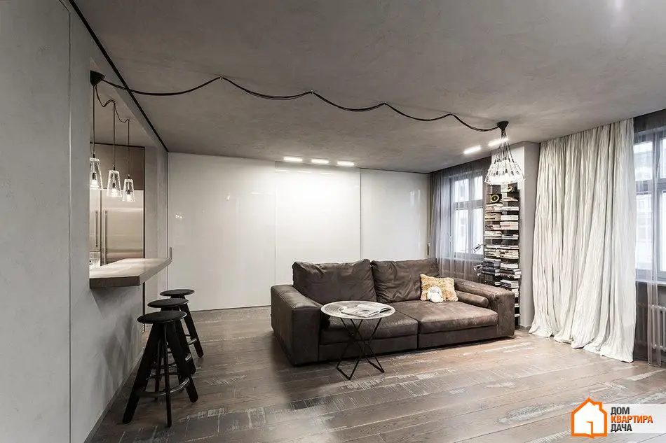 Las preferencias más comunes que los diseñadores enfrentan actualmente de sus clientes son una mezcla del estilo nórdico y el loft. Los diseñadores de este proyecto decidieron hacer una prueba combinando la simplicidad nórdica con la rústica decoración del estilo loft. El resultado del diseño se ajusta perfectamente a los dueños de la vivienda: jóvenes con una variedad de aficiones inusuales.