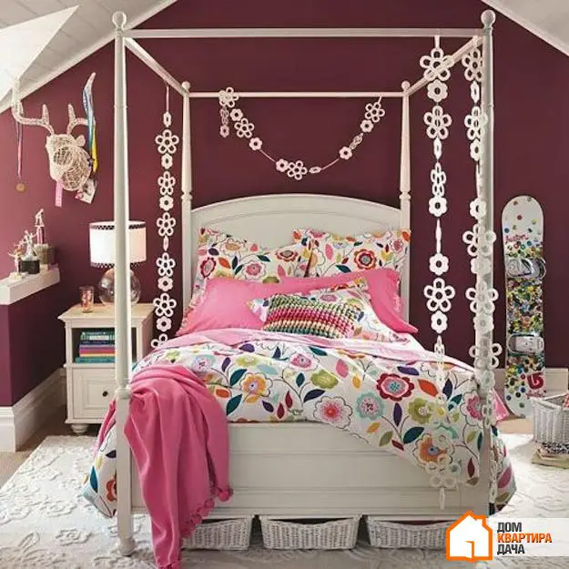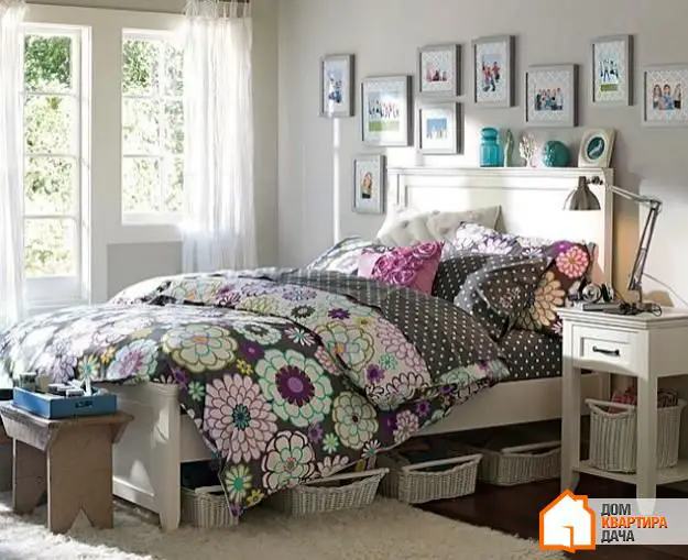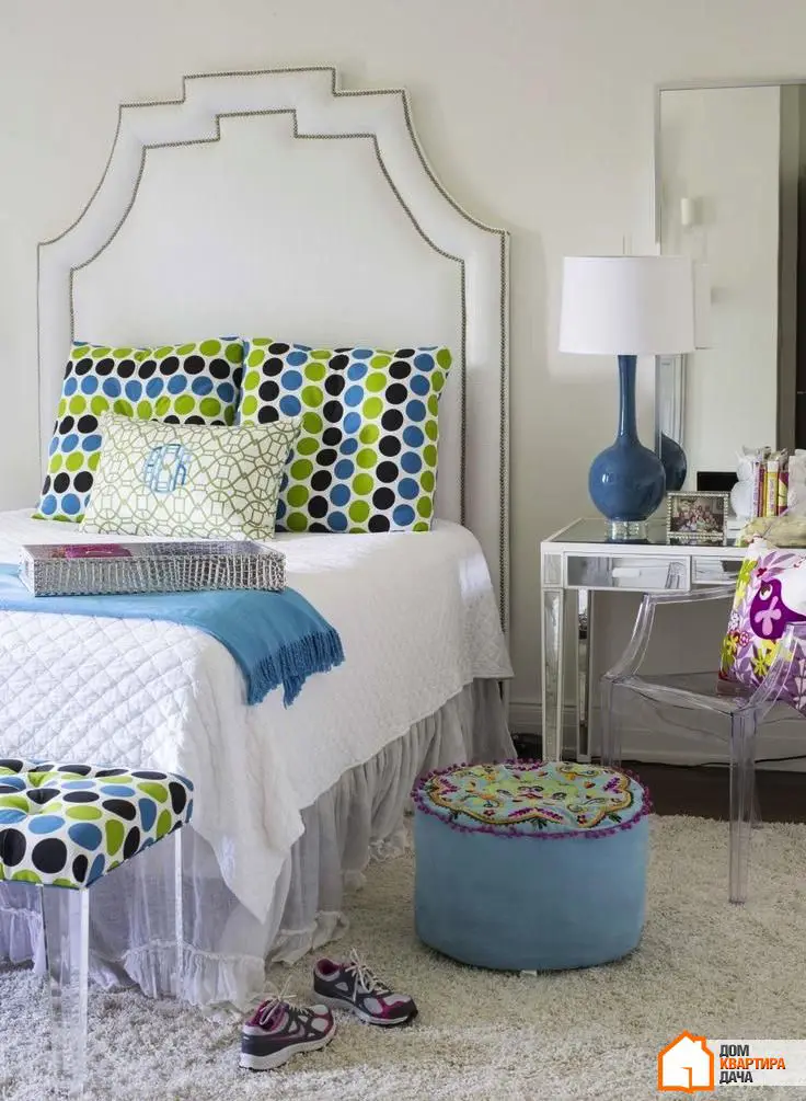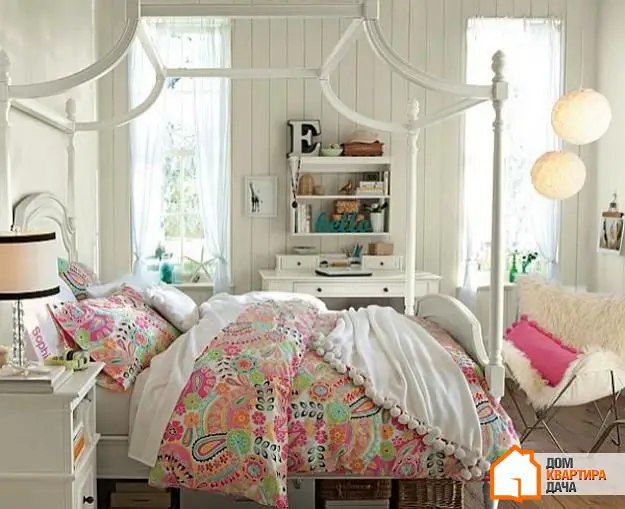 Se pueden definir dos direcciones principales en el diseño de dormitorios para jóvenes: estilo romántico y femenino (glamur, provenzal, art déco, ecléctico vibrante);