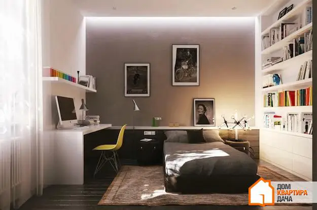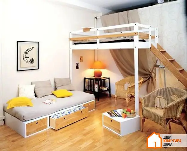 Sala de estar y dormitorio en una sola habitación: una solución exitosa de Dinamarca