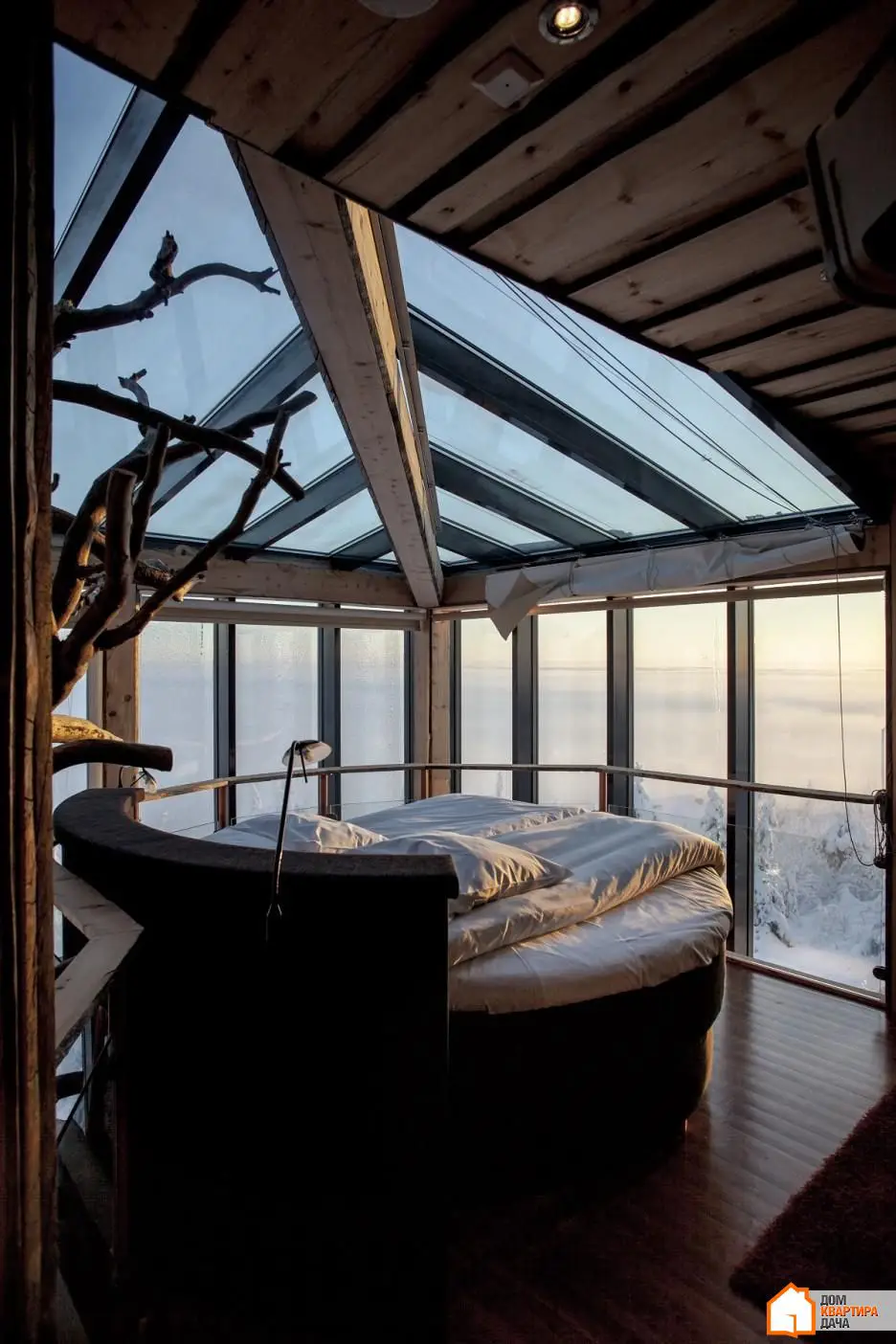 20. Es ampliamente conocido que las plantas son un adorno encantador para cualquier dormitorio, pero ¿y si fuera un árbol real? Eso puede ser interesante: dormir en medio de la naturaleza, pero con comodidad solo posible dentro de una casa.
