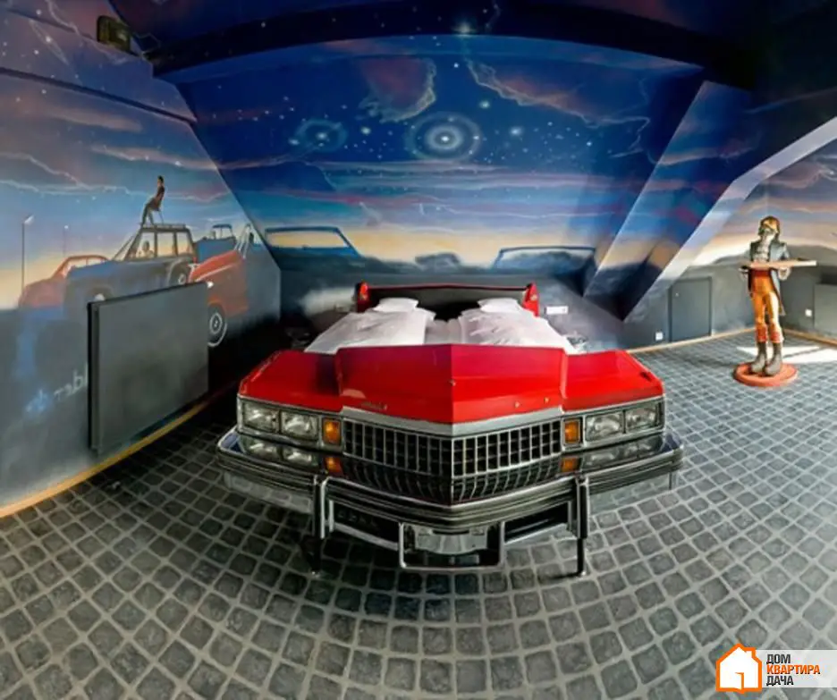24. Una cama de automóvil, ¿qué mejor idea para un dormitorio? Pero normalmente es una idea infantil encantadora. Esta belleza podría haber sido un verdadero automóvil.
