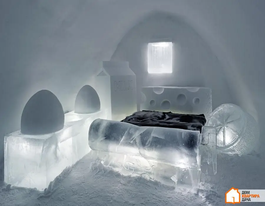 11.Dormir en una cama de hielo en una habitación hecha de hielo puede parecer poco cómodo. Pero vale la pena probarlo, especialmente si junto a usted hay un conjunto estándar de productos del refrigerador.