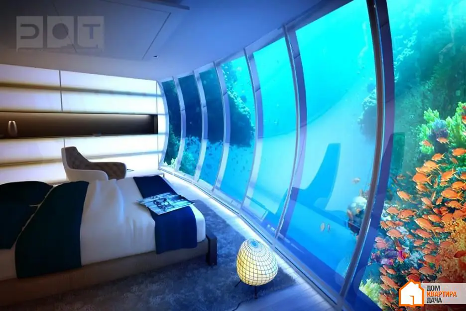 15.Seguro que ya ha oído hablar de hoteles submarinos, pero ¿ha visto alguna vez un dormitorio subacuático? En él, estará completamente rodeado por enormes paredes de vidrio detrás de las cuales hay toneladas de agua, y numerosos peces de todas las formas y tamaños serán sus invitados habituales.