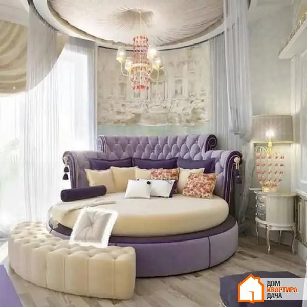 18. Si hablamos de este dormitorio, la cama es la parte principal de todo el diseño. Es perfectamente redonda con un elegante cabecero y una hermosa lona. Las velas colgantes, la iluminación y el color púrpura sorprendente solo añaden a la idea.